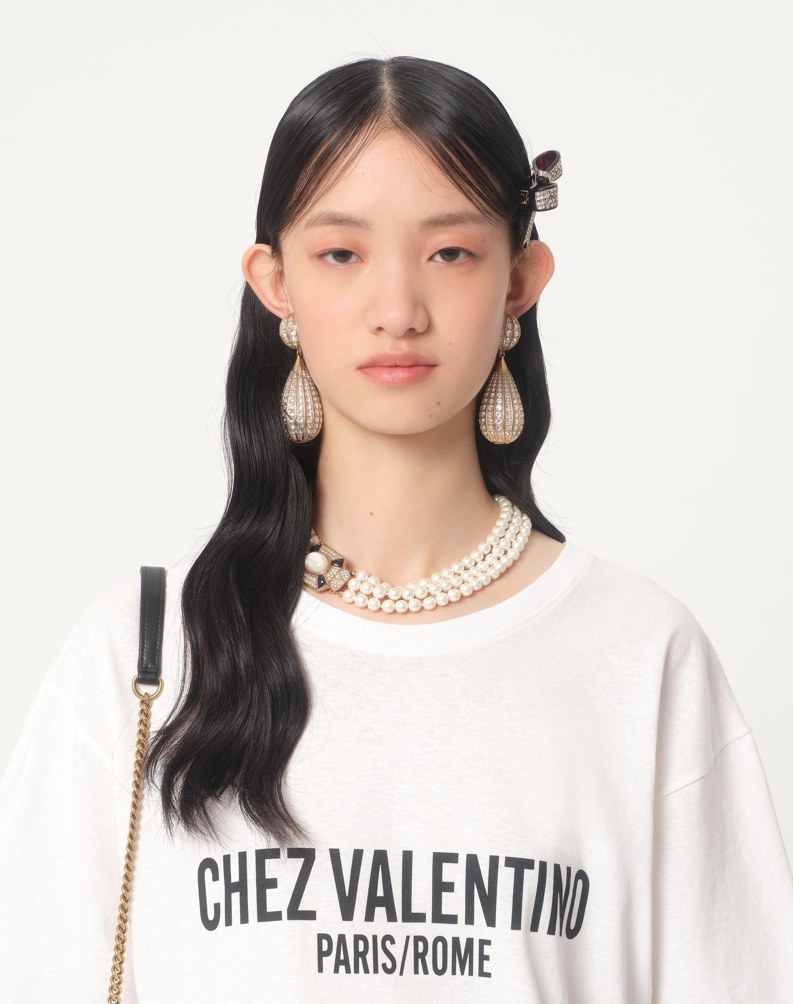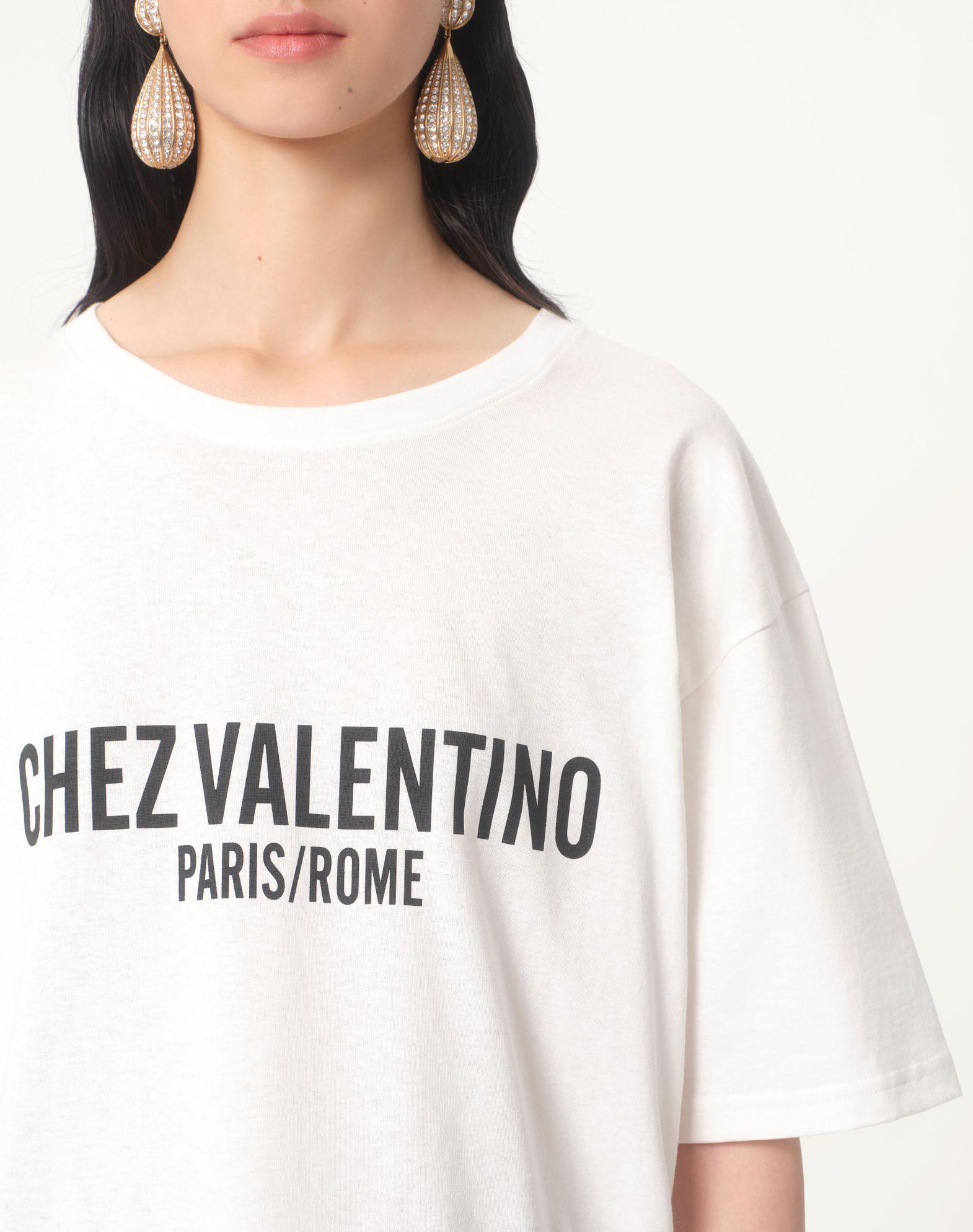 Jersey Cotton T-Shirt With Chez Valentino Print