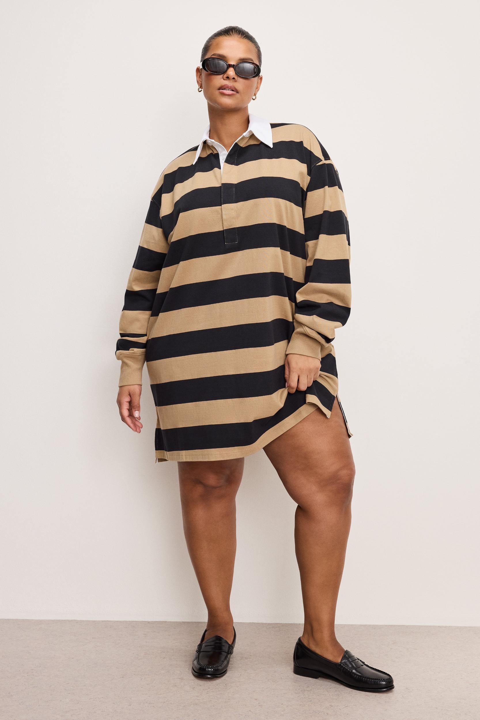 A sporty twist on classic style, with just the right amount of schoolgirl chic. The Jersey Polo Mini Dress has a playful oversized edge, where sleek lines meet bold attitude, ready to make its own rules. - Collared neckline - Long sleeves - Hidden button-up closures at front - Mini length Model size is 5'8 and wearing size S Model size is 5'8 and wearing size XL Fabric: 100% Cotton Care: Machine wash cold on gentle cycle only. Use non-chlorine bleach when needed. Tumble dry on low.