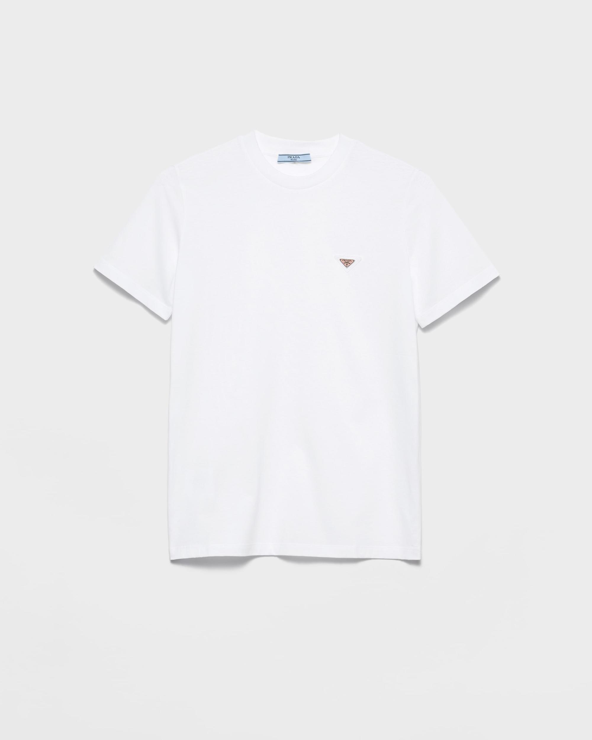 This T-shirt is made of jersey treated to create a light distressed effect. The relaxed fit style is decorated with the enameled metal triangle logo.