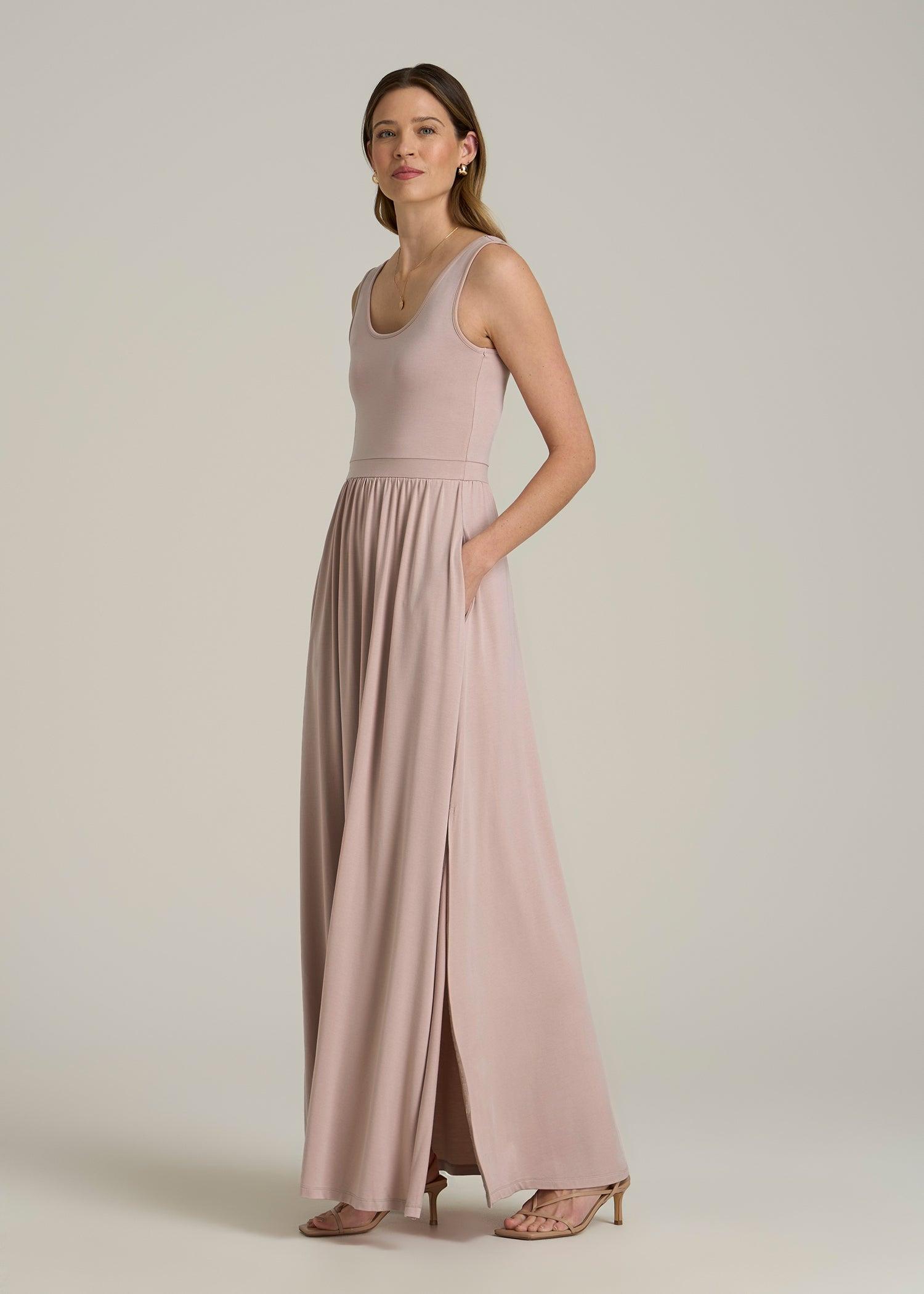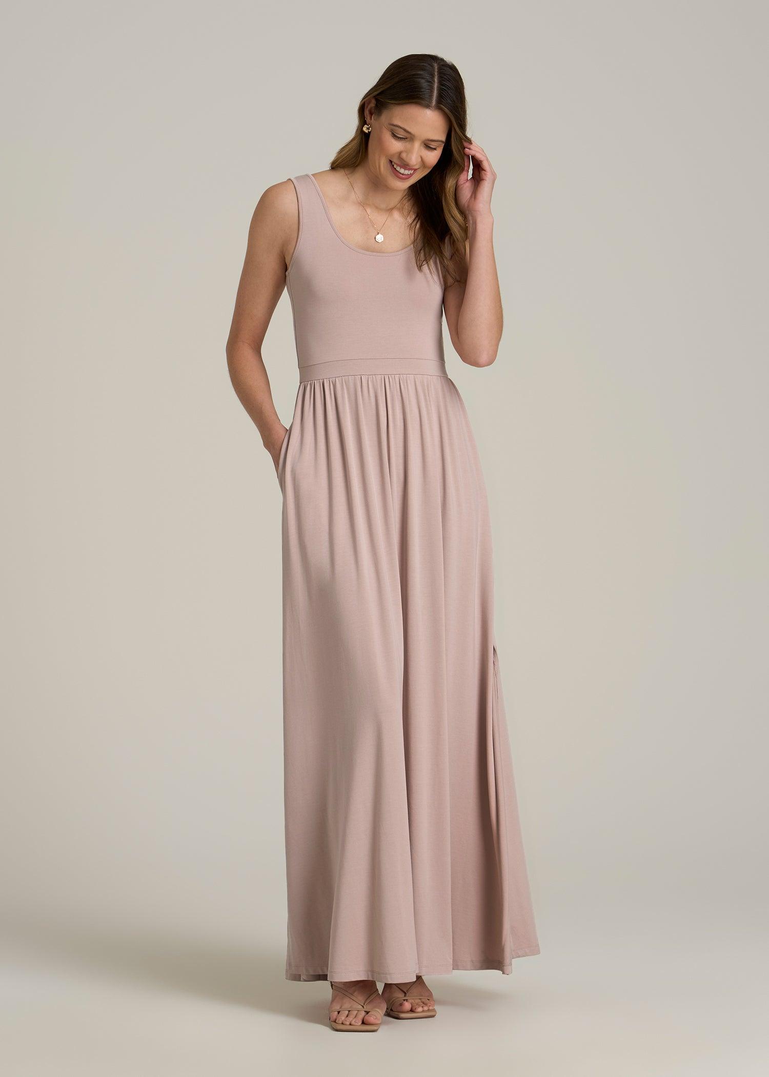 Our Jersey Tank Tall Maxi Dress adds simple elegance to your everyday fashion fits. This dress combines the comfort of a tencel-spandex blend with the convenience of pockets, offering a sleek, versatile style for casual days or warm nights. Dress it up or dress it down, this tall women's dress will be a warm-weather wardrobe staple you'll reach for again and again.• Stretch fabric for a comfortable fit• Sleeveless design, ideal for warm weather• Practical pockets for added convenience