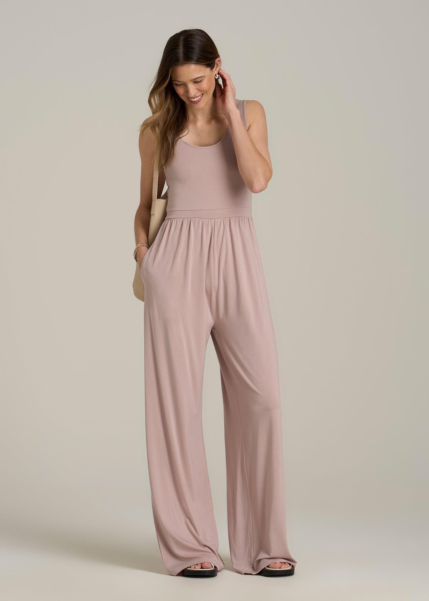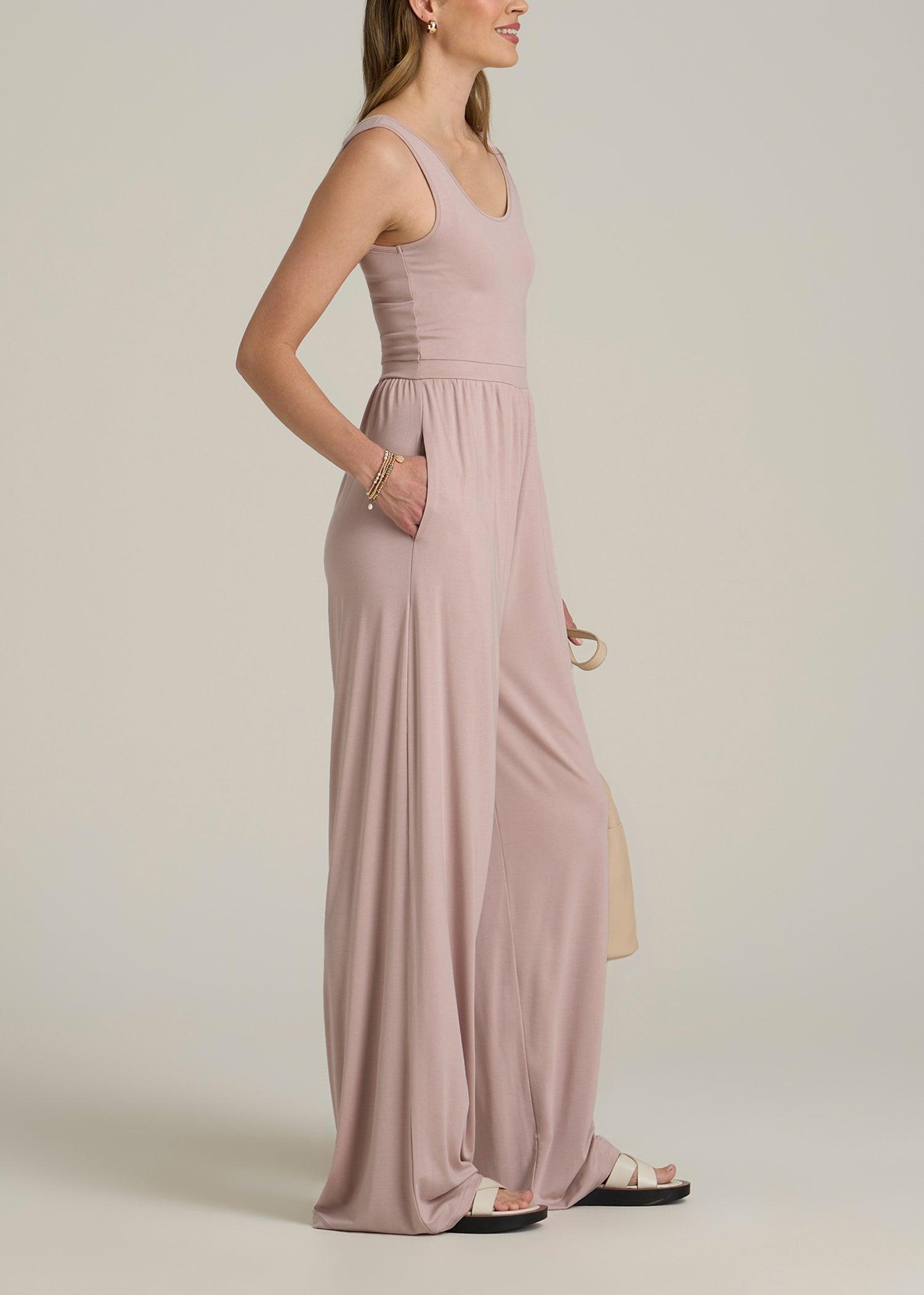 Jersey Tank Wide Leg Tall Women's Jumpsuit with Pockets in Desert Rose