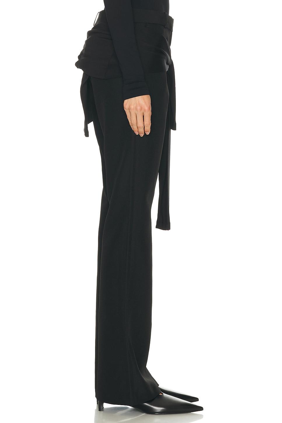 pant100% recycled polyesterTrim: 50% cotton, 50% modal / Dry clean / Zipper fly with hook and bar closure / Faux long sleeve shirt-wrap attached to waist / Belt hoops / Made in Portugal / Our Style No. CRNF-WP29 / Manufacturer Style No. COPP140F3004 / Model is wearing size 36.