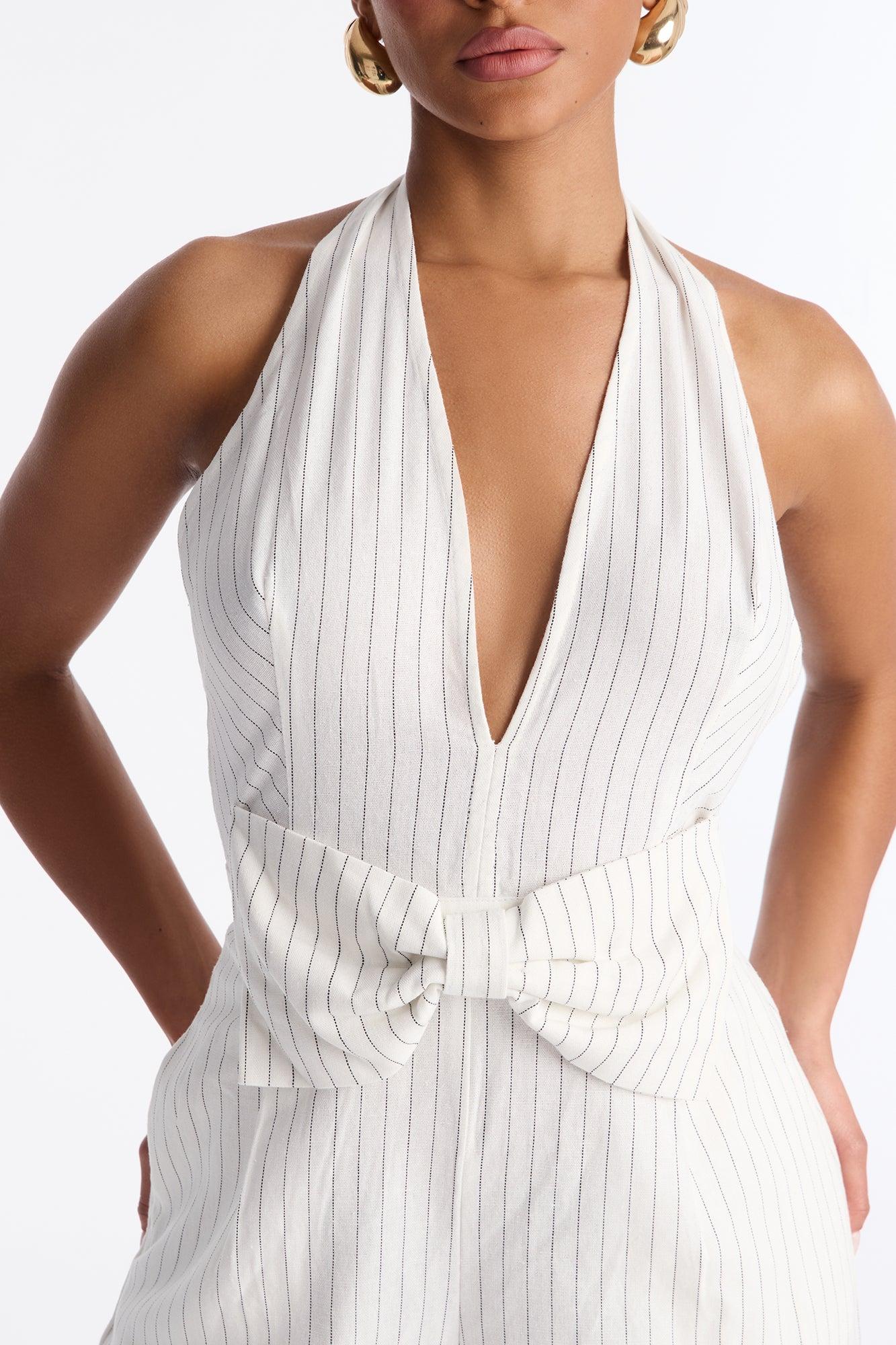 Jess Pinstripe Bow Backless Jumpsuit - White Female