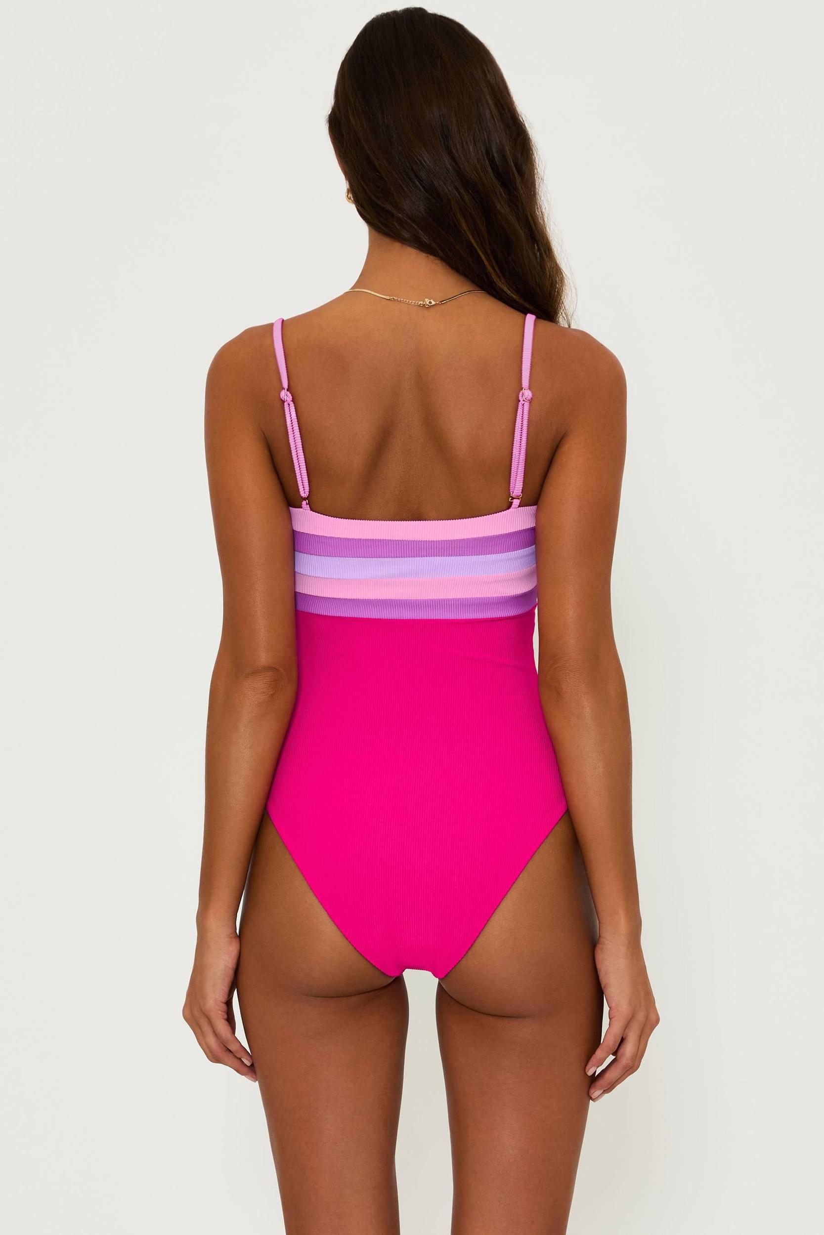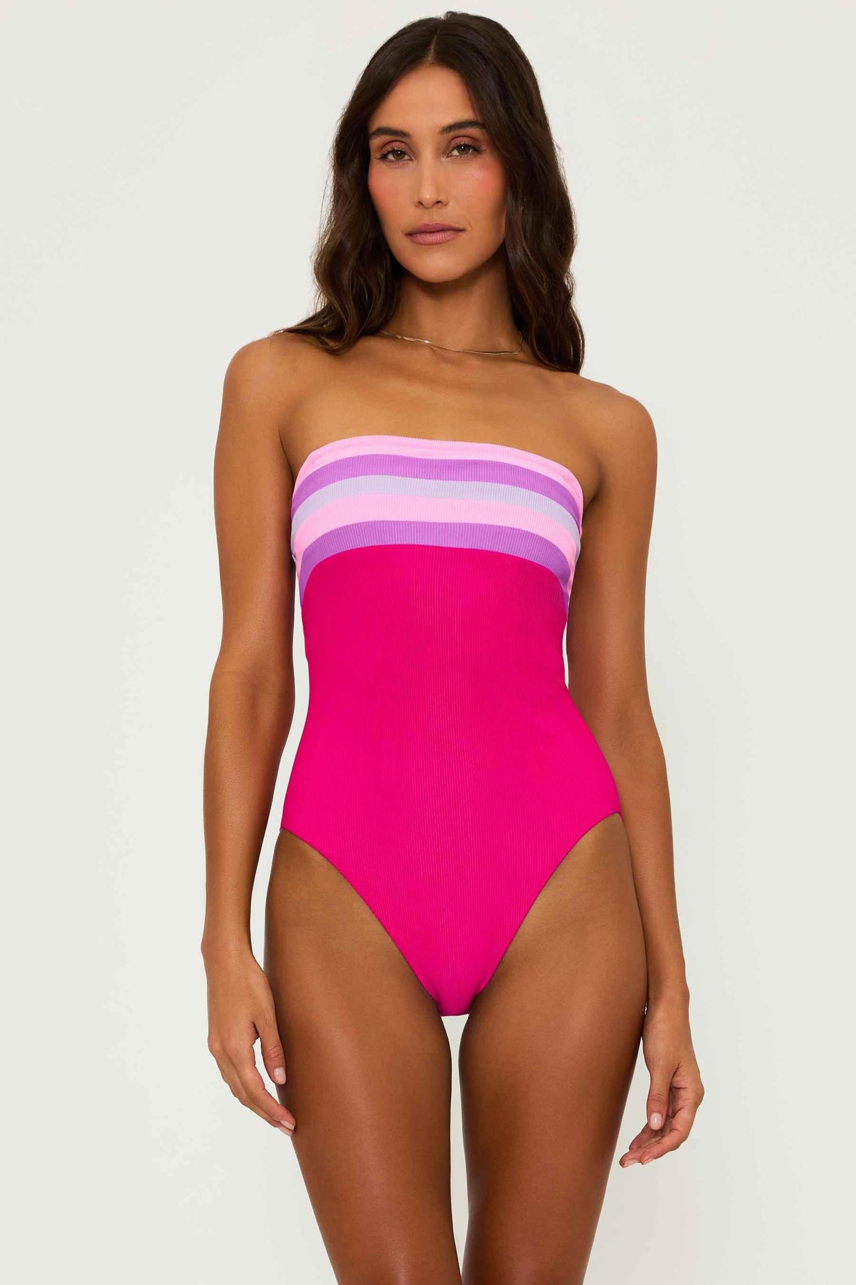 82% POLYESTER, 18% SPANDEX Ribbed Fabric Removable, adjustable straps Removable BRa Pads Moderate Coverage Model is wearing size small