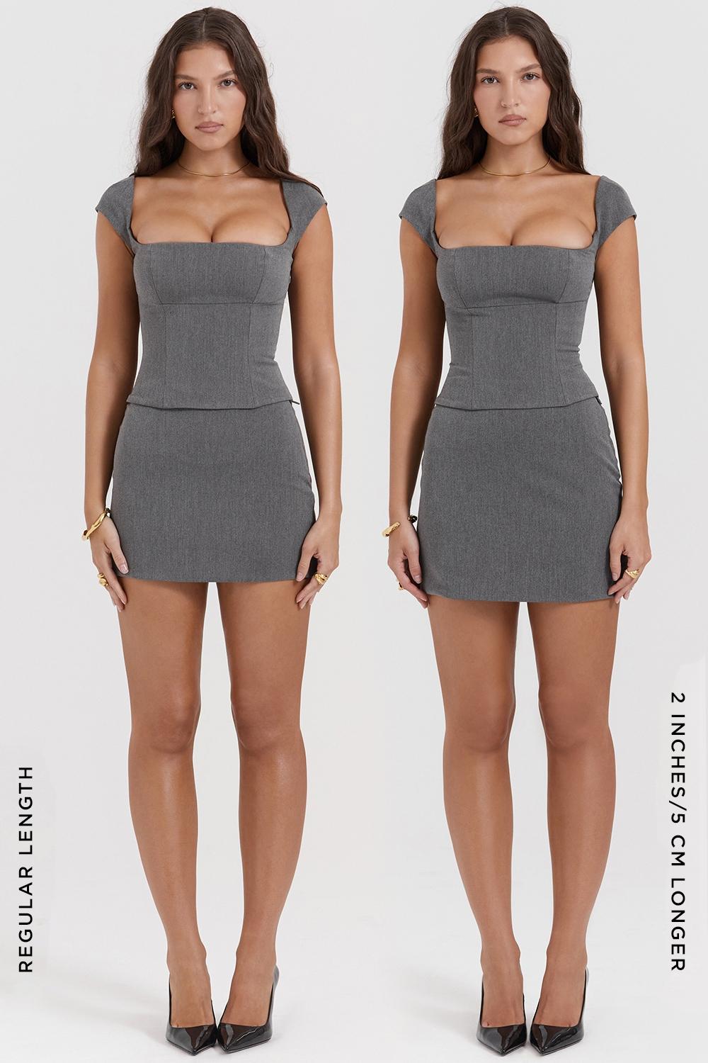 Taller girls, we heard you and this is available in two lengths, our regular mini length and 2 inches / 5cm longer. Regular length: Approx 37cm and Longer length: Approx 42cm. Match yours with our 'Rowena' corset and point-toe pumps.