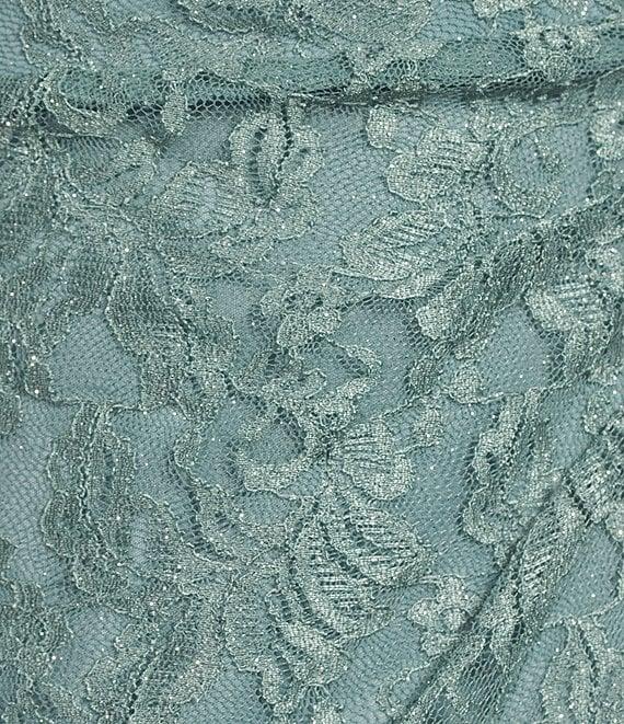 From Jessica Howard, this gown features: Lace fabrication Sheath silhouette Asymmetrical neckline 3/4 sleeves Side tuck Bow detail Lined body Center back zip closure Approx. 60" length Polyester/spandex Hand wash cold/flat dry Imported.