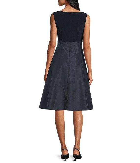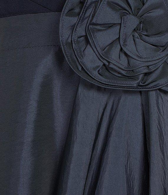From Jessica Howard Petite, this dress features: ITY/taffeta fabrication V-neckline Sleeveless A-line silhouette Lined Pockets 3D floral applique Ruffle skirt detail Zip back closure Approx. 41" in length from high point shoulder Polyester/nylon Dry clean Imported.