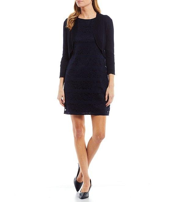 From Jessica Howard, this shrug features: knit fabrication bolero silhouette open front 3/4 sleeves scallop rib trim open front; no closure approx. 17.5" length from shoulder to hem rayon/nylon/spandex hand wash/dry flat Imported.