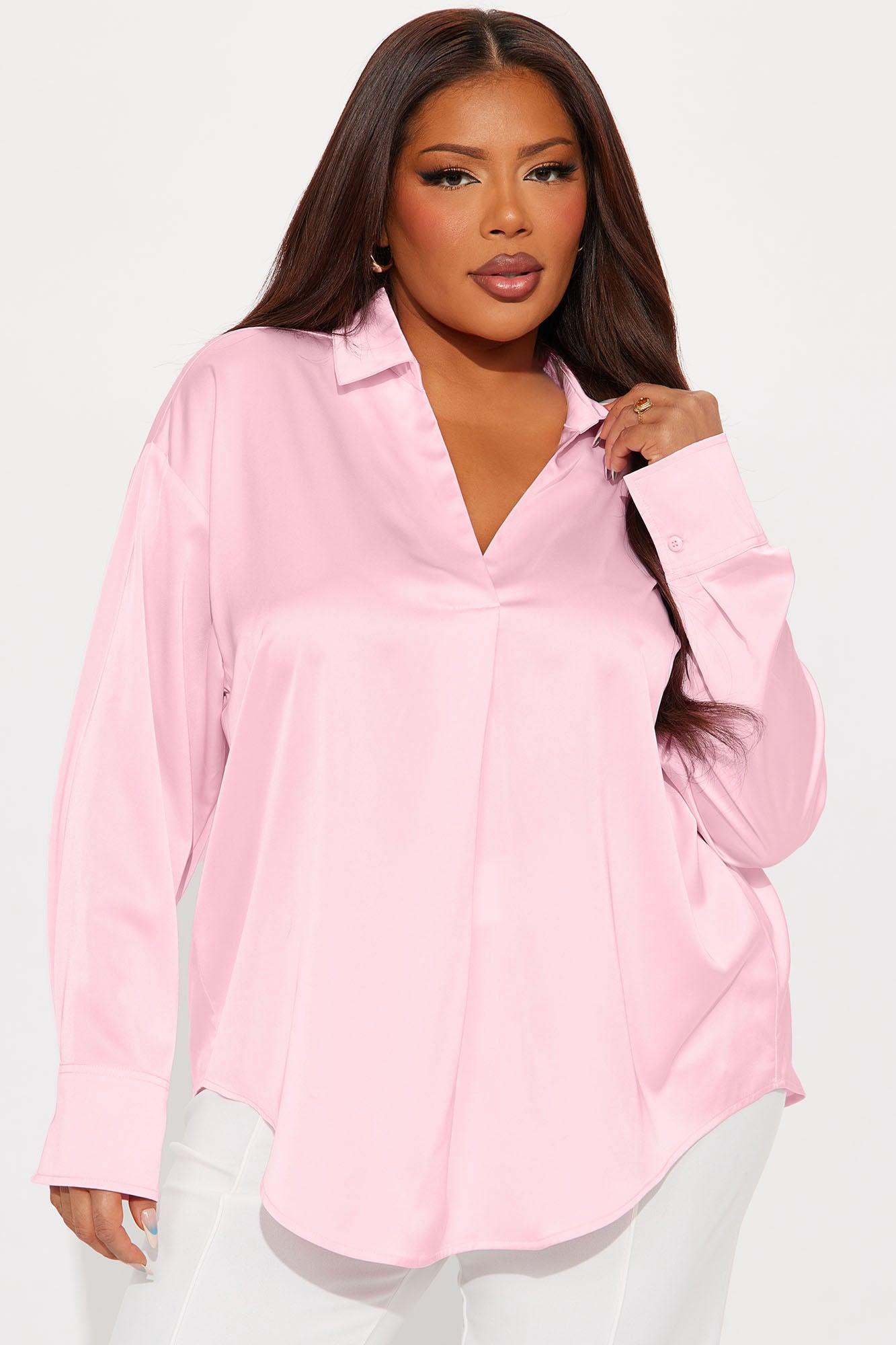 Available In Black, Ivory And Pink. Satin Blouse Top Non Stretch Long Sleeve Collar Self: 97% Polyester 3% Spandex Imported