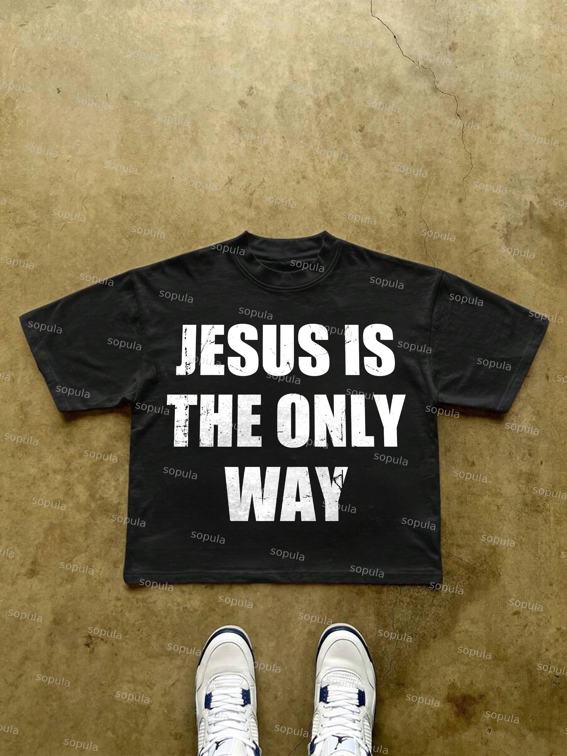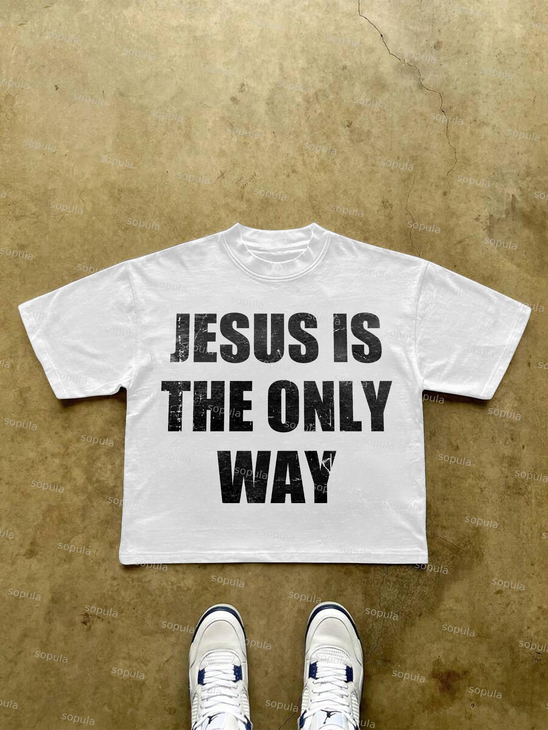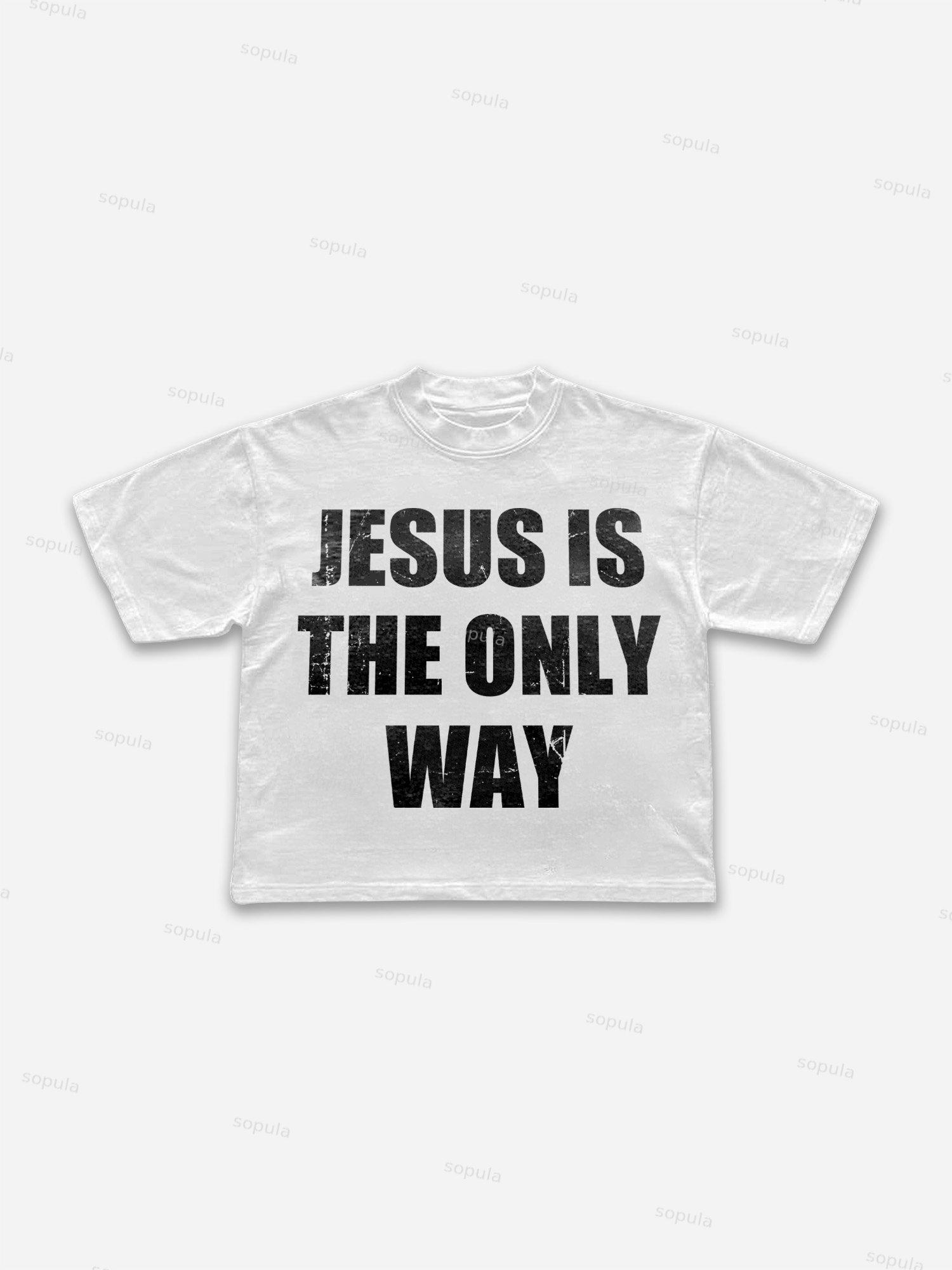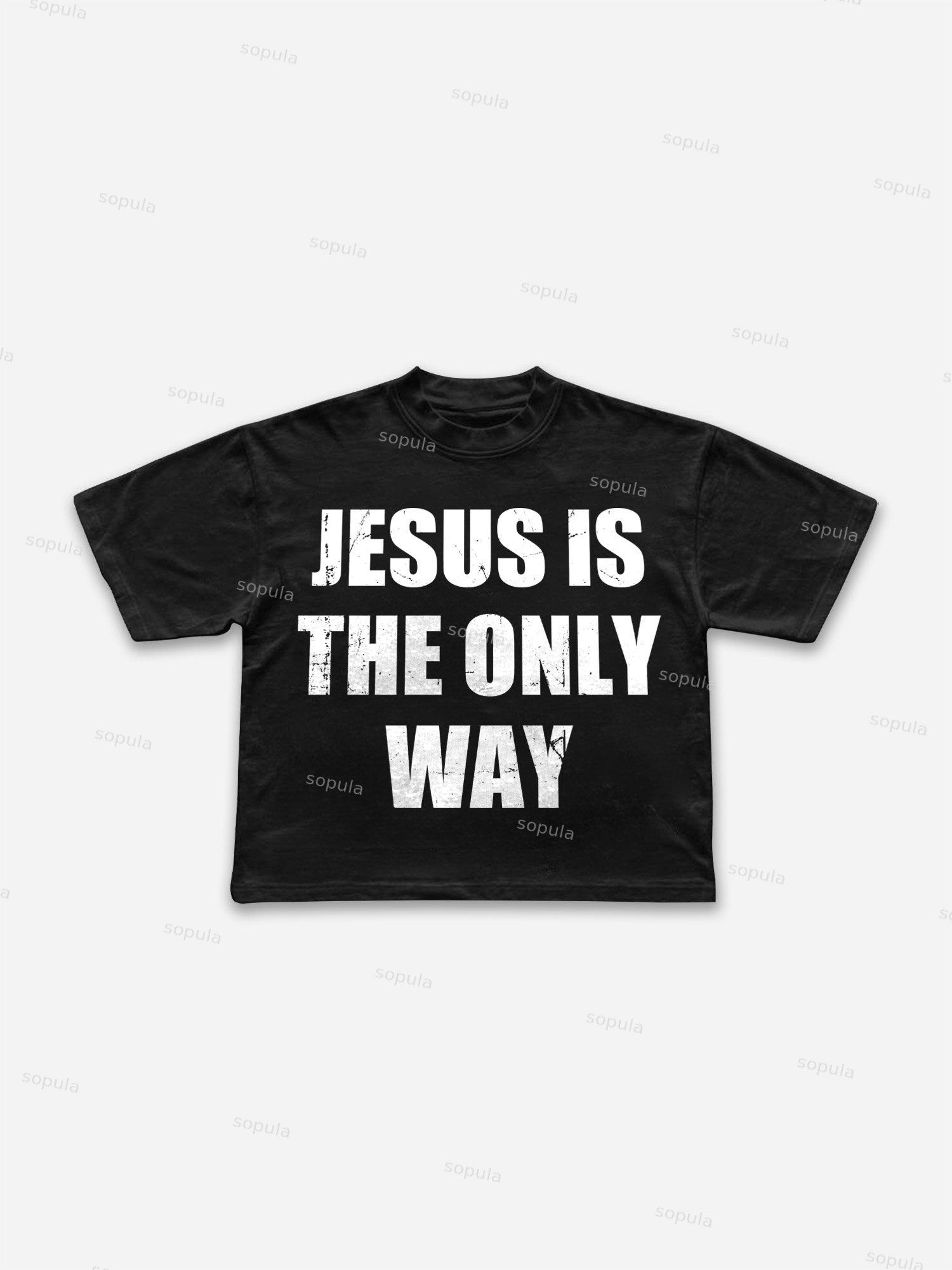 Jesus Is The Only Way Cropped T-shirt. SPU: CP-221034-WJY Fabric Name: 100% Cotton Pattern: Jesus Is The Only Way Process: Printed Style: Fashion Length: Regular Collar: Round Neck Popular Elements: Letter Print Sleeve Type: Short Sleeve Occasion: Street, Daily Theme: Summer Size Shoulder Bust Length Sleeve cm inch cm inch cm inch cm inch S 43 16.8 98 38.2 64 25.0 19 7.4 M 46 17.9 104 40.6 68 26.5 20 7.8 L 49 19.1 110 42.9 72 28.1 21 8.2 XL 52 20.3 116 45.2 76 29.6 23 9.0 2XL 55 21.5 122 47.6 80 31.2 25 9.8 3XL 58 22.6 128 49.9 82 32.0 27 10.5 Due to manual measurement, there may be an error of 1-3cm