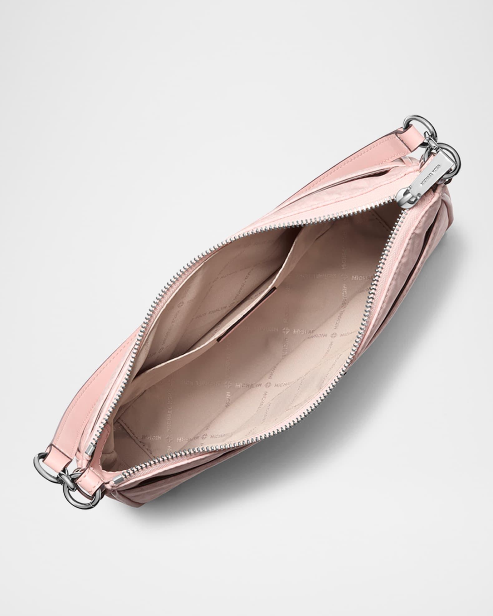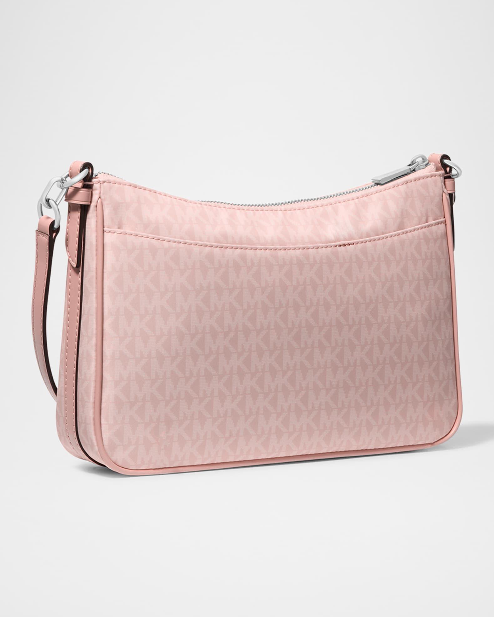 MICHAEL Michael Kors "Jet Set" coated signature logo canvas crossbody bag with logo charm Detachable shoulder strap Detachable, adjustable crossbody strap Can be worn as a shoulder or crossbody bag Zip top closure Exterior, two slip pockets Interior, one slip pocket Lining: Polyester Approx. 7.8"H x 11"W x 2.5"D Polyester Wipe clean Imported