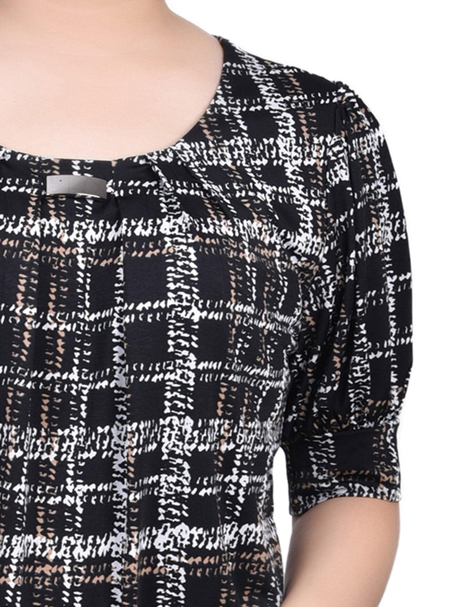 Jet Traceplaid Short Sleeve Balloon Sleeve Top - Petite