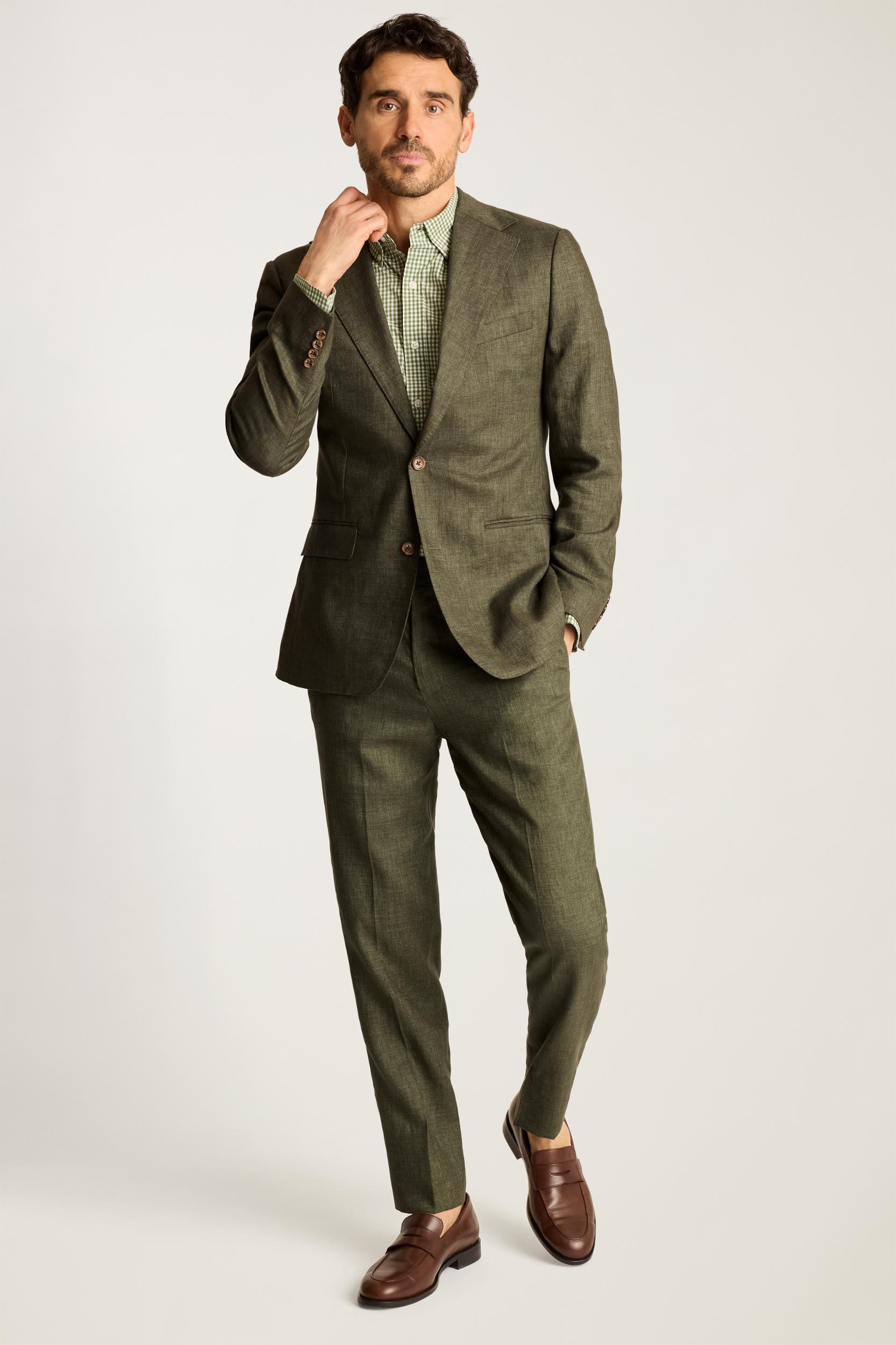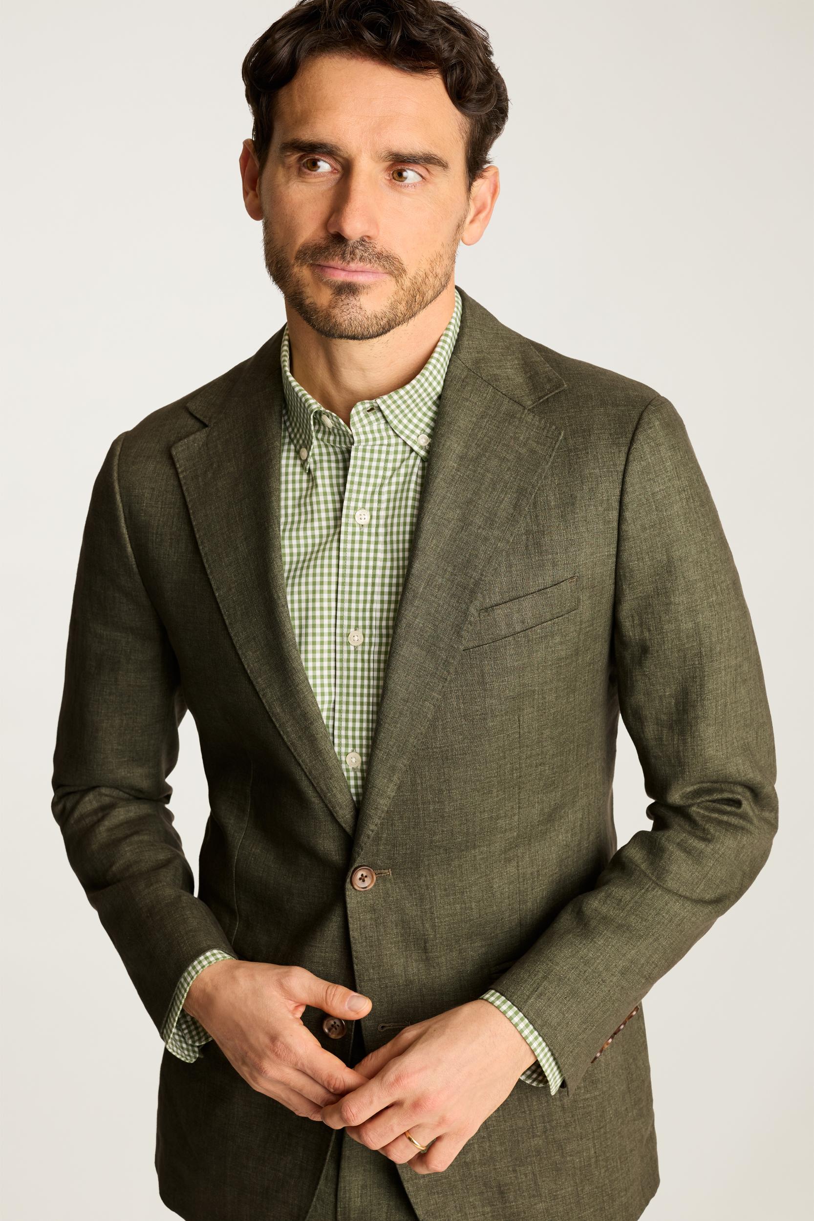 Lightly constructed in Italian linen. Wear separately or as a full suit with matching dress pants.