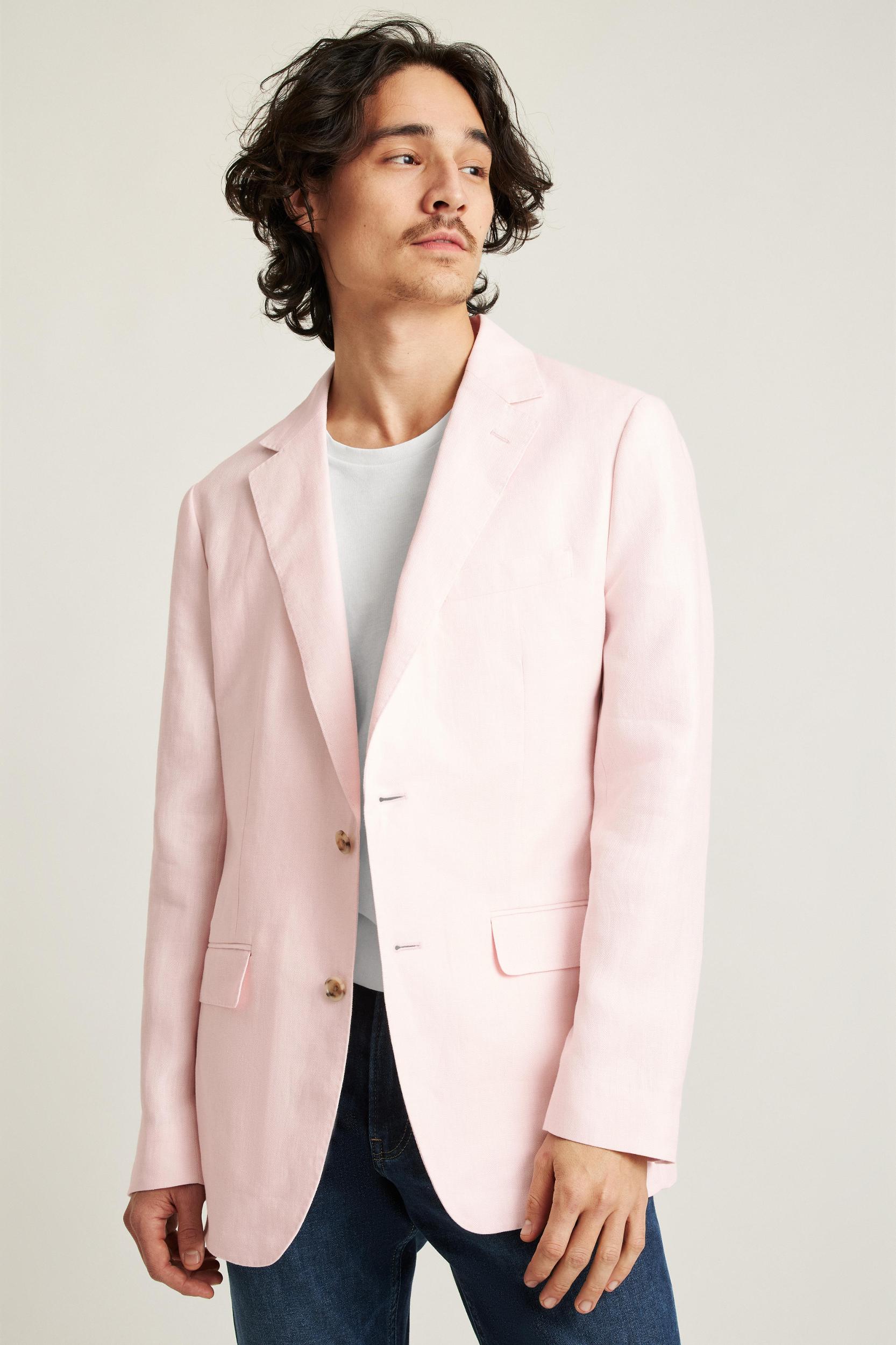 Stretch Linen Blazer for Tall Men in Light Beige Linen Male