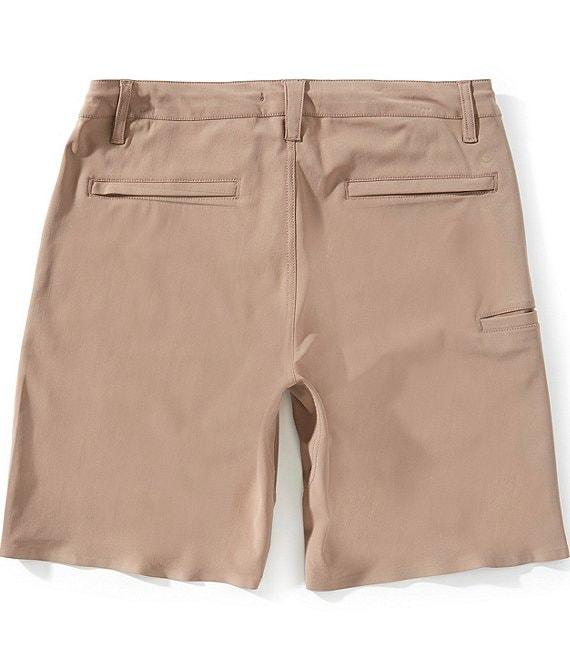 From JETTY, these shorts feature: Solid tone Flat front Reversible silicone dipped round drawcords Deep hand pockets Zipper back pockets Hip cell phone pocket Seamless bottom hem 9" inseam 4-way stretch Polyester Machine wash/tumble dry Imported.