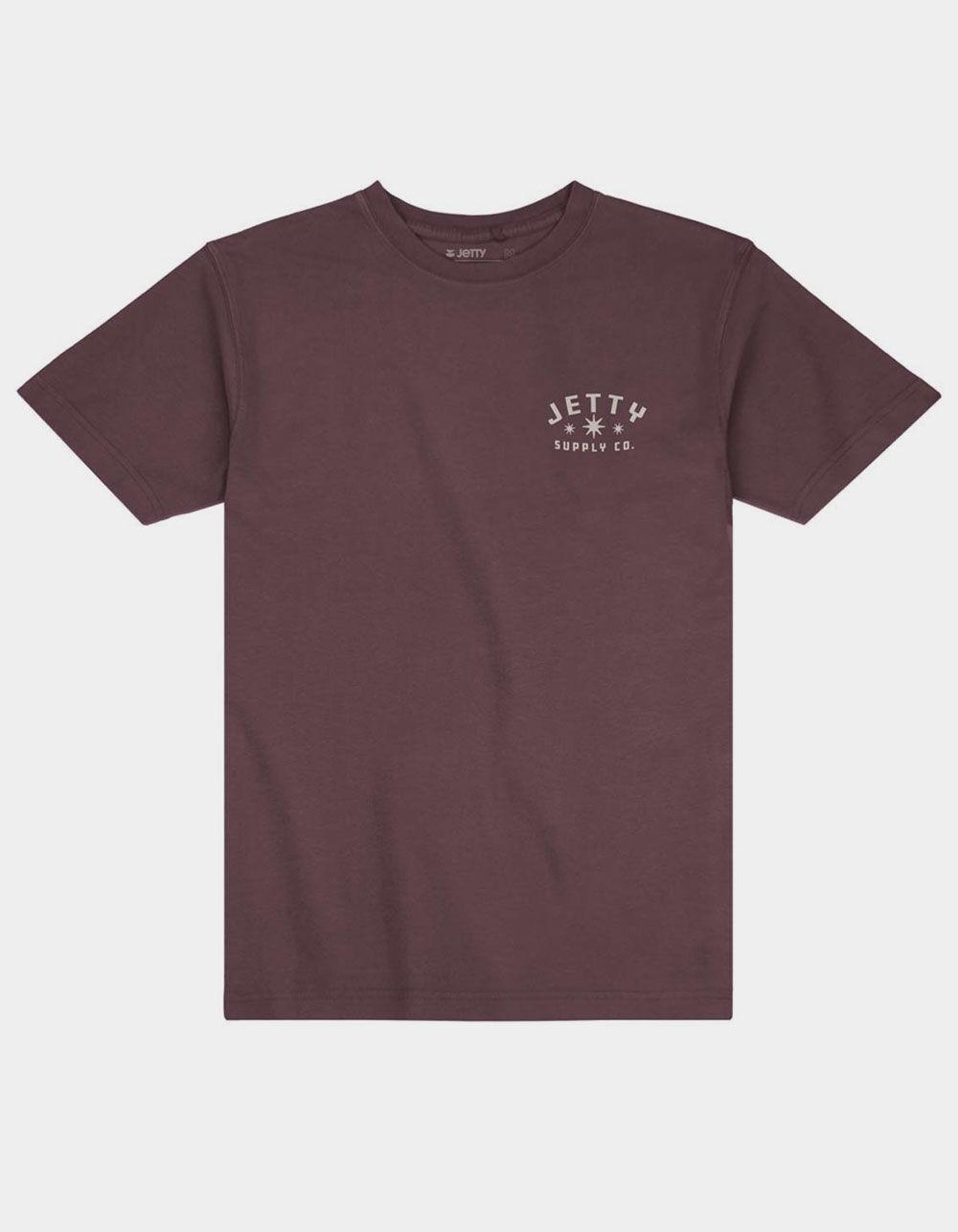 Jetty Bullshark Tee. Graphic screened at left chest. Large graphic on back. Crew neck. Short sleeve. 100% Cotton. Machine wash. Imported.