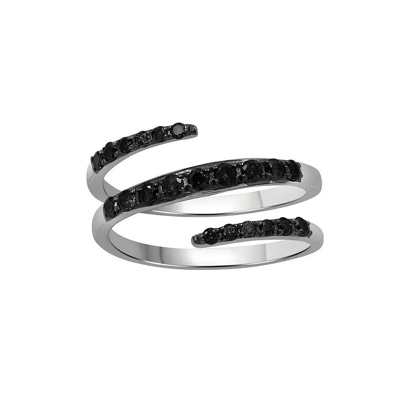 Featuring a wrap-around design lined with black diamonds, this Jewelexcess ring completes your one-of-a-kind look. Click on this JEWELRY & WATCHES GUIDE to learn about fit, styles, materials and more! Featuring a wrap-around design lined with black diamonds, this Jewelexcess ring completes your one-of-a-kind look. Click on this JEWELRY & WATCHES GUIDE to learn about fit, styles, materials and more! FEATURES Width: 11.80 mm Nickel free Metal: sterling silver Plating: rhodium Finish: polishedDIAMOND DETAILS Total weight: 1/2 ct. Color: black Shape: round brilliant Setting: pave Gemstones may have been treated to enhance their appearance. Special care may be required. Please visit our Gemstone Treatment & Special Care Guide for more information. Image(s) may be enlarged to show detail. Please note, due to the high value of this item, a signature may be required upon delivery. Size: 7. Color: White. Gender: female. Age Group: adult.