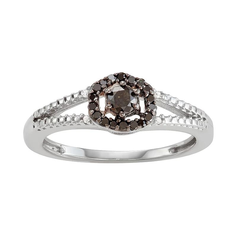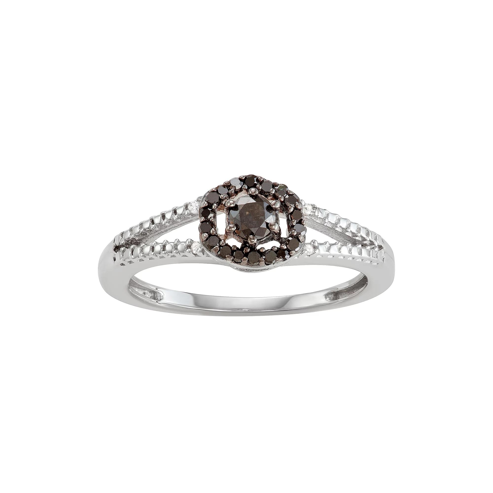 An open-work design and black diamonds give this sterling silver ring a unique look. RING DETAILS Width: 7.3 mm. Metal: sterling silver Plating: rhodium Finish: polished DIAMOND DETAILS Total carat weight: 1/4 ct. Center stone weight: 1/6 ct. Shape: round Color: black, white Color grade: H,I Clarity: I2,I3 Setting: prong Diamond weights are approximate. Diamond total weights may vary between .01 and .08 ct. Some diamonds have fewer than 17 facets.Diamond equivalent carat (ct.) Total Weight (T.W.) represents the approximate total weight of diamonds of equivalent appearance.Gemstones may have been treated to enhance their appearance. Special care may be required. Please visit our Gemstone Treatment & Special Care Guide for more information. Gender: female. Age Group: adult.