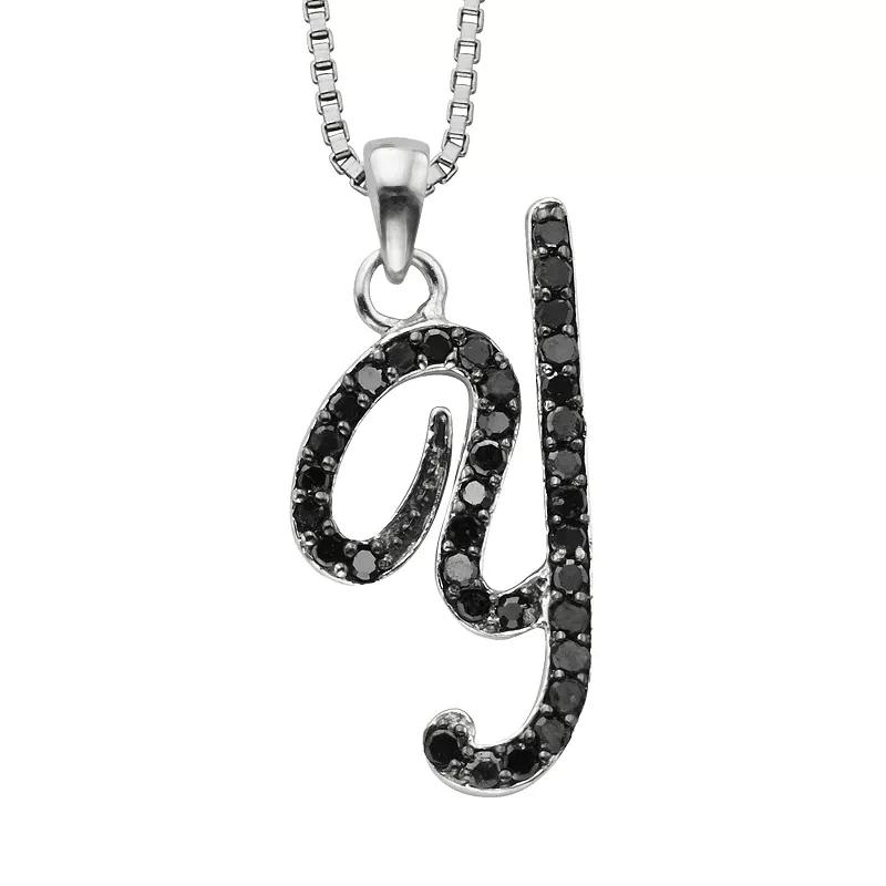 Letter perfect. This sterling silver necklace gets a stylish infusion with a round-cut black diamond (1/4 ct. t.w.) initial pendant. Approximate length: 18 inches. Approximate drop length: 9/10 inch. Approximate drop width: 3/8 inch.