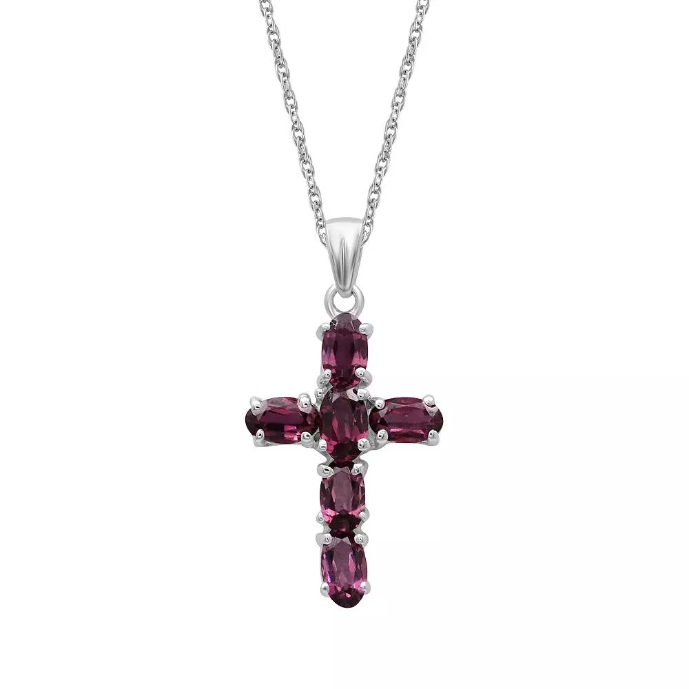 Divinely inspired, this Jewelexcess garnet cross pendant necklace is sure to be an everyday favorite. Click on this JEWELRY & WATCHES GUIDE to learn about fit, styles, materials and more! Divinely inspired, this Jewelexcess garnet cross pendant necklace is sure to be an everyday favorite. Click on this JEWELRY & WATCHES GUIDE to learn about fit, styles, materials and more! FEATURES Chain type: rope Nickel free Metal: sterling silver Plating: rhodium Finish: polishedSTONE DETAILS Stone type: garnet Total weight: 1 1/2 ct. Shape: oval Setting: prong Gemstones may have been treated to enhance their appearance. Special care may be required. Please visit our Gemstone Treatment & Special Care Guide for more information. Size: One Size. Color: White. Gender: female. Age Group: adult.