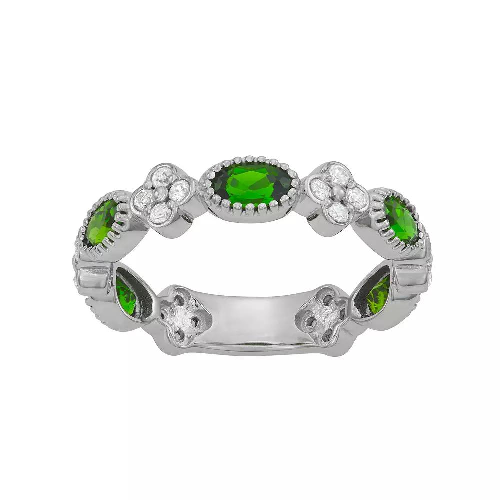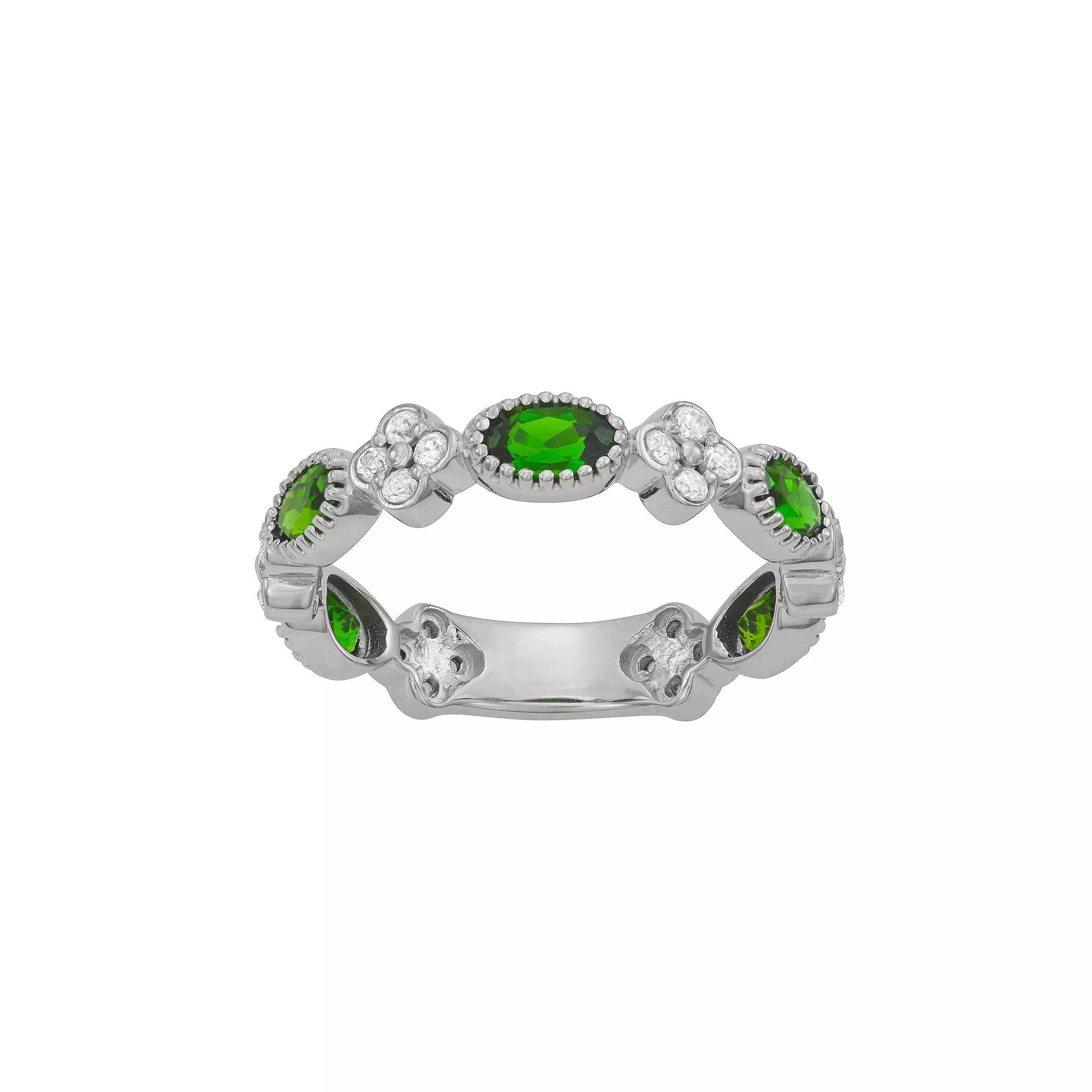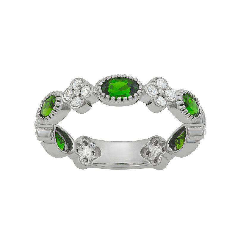Enchant yourself with this charming Jewelexcess chrome diopside and white zircon ring. Enchant yourself with this charming Jewelexcess chrome diopside and white zircon ring. Width: 4.30 mm Metal: sterling silver Plating: silver tone Finish: polished Nickel freeSTONE DETAILS Stone type: chrome diopside, white zircon Total weight: 1 1/2 ct. Center stone size: 5 mm x 3 mm Shape: oval, round Setting: bezel, pave Gemstones may have been treated to enhance their appearance. Special care may be required. Please visit our Gemstone Treatment & Special Care Guide for more information. Image(s) may be enlarged to show detail. Size: 7. Gender: female. Age Group: adult.