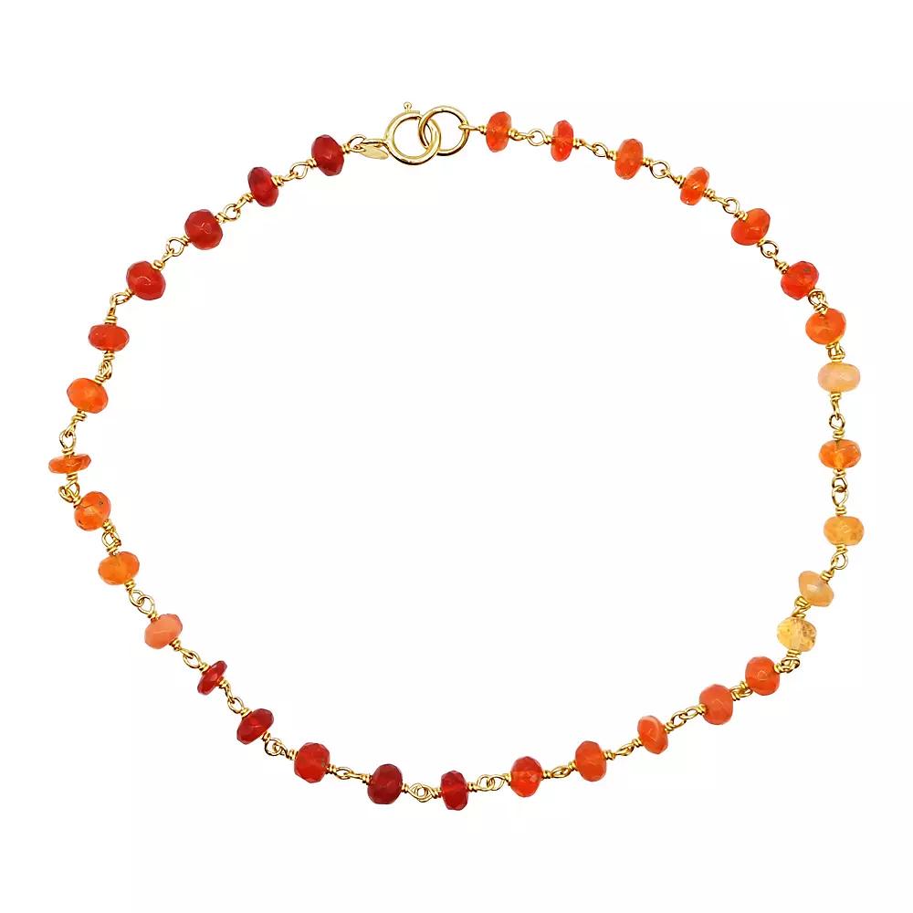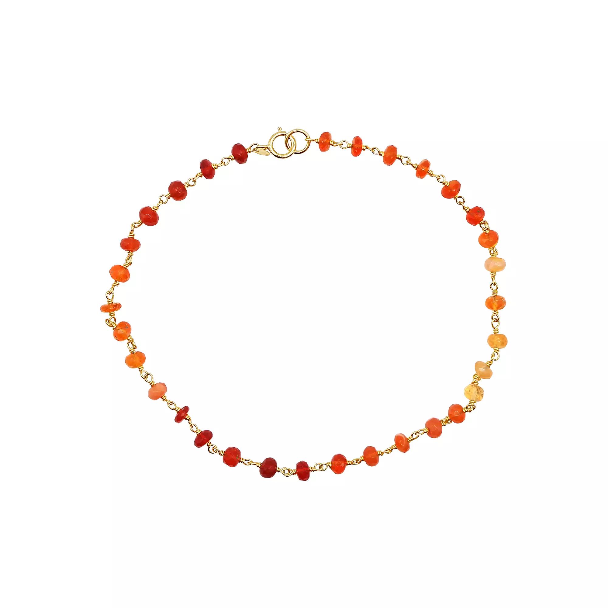 Decorated end-to-end with vibrant fire opal links, this Jewelmak anklet is a colorful complement to your favorite outfits. Decorated end-to-end with vibrant fire opal links, this Jewelmak anklet is a colorful complement to your favorite outfits. Nickel free Clasp: spring ring Metal: 14k gold Length: 9.5 in. Packaging: boxed Finish: polishedSTONE DETAILS Stone type: fire opal Total weight: 13 ct. Center stone weight: 1/5 ct. Center stone size: 4 mm Shape: rondelle-cut bead Gemstones may have been treated to enhance their appearance. Special care may be required. Please visit our Gemstone Treatment & Special Care Guide for more information. Size: 9.5". Gender: female. Age Group: adult.