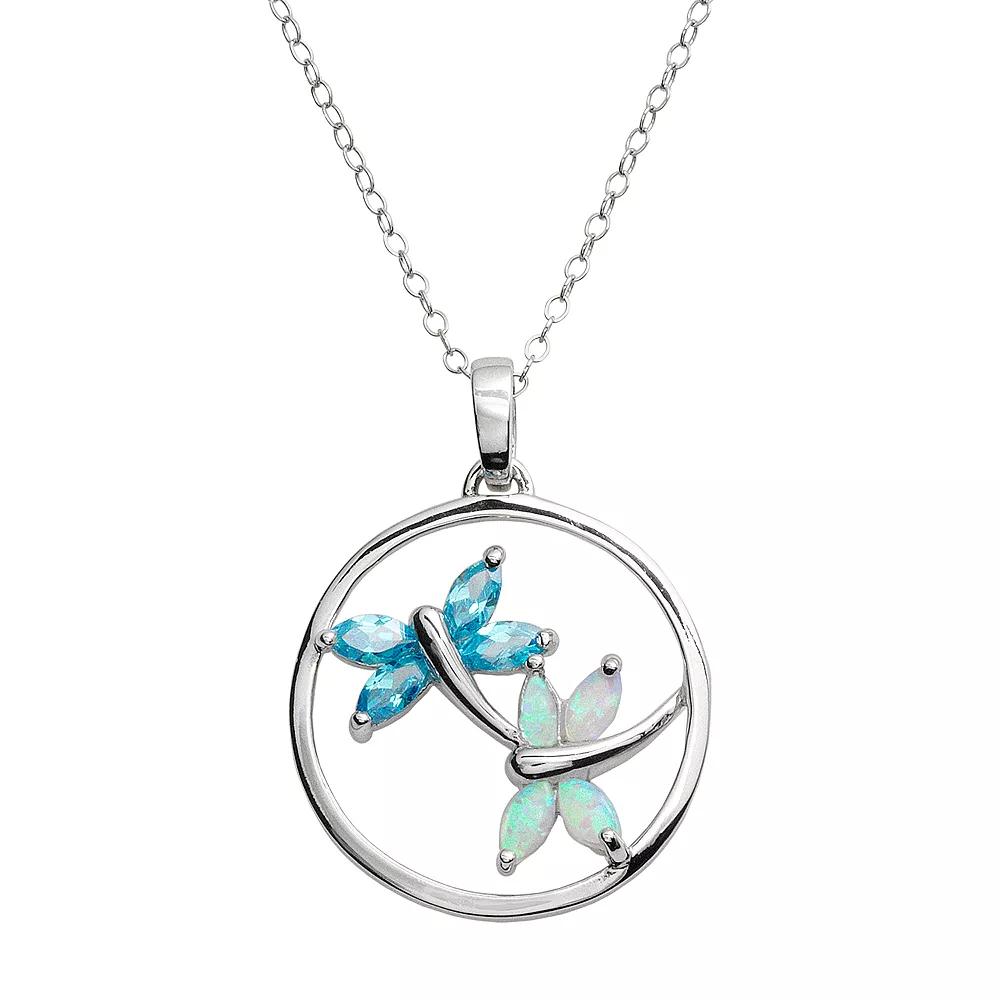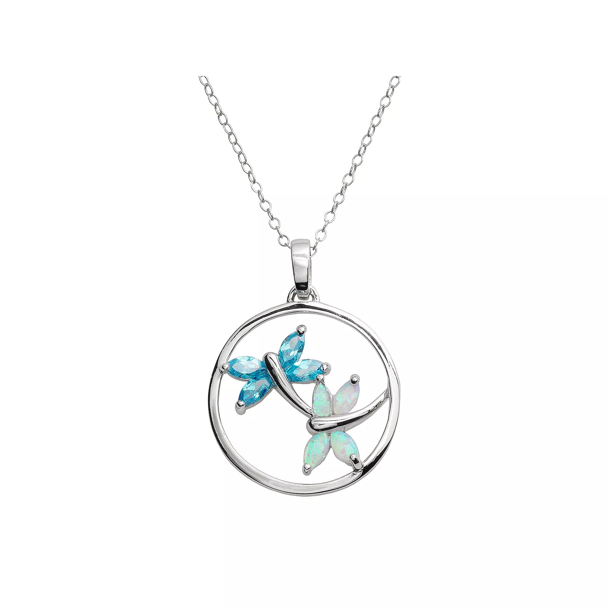 Marquise-cut blue cubic zirconia and lab-created opal stones offer stunning sparkle. Dragonfly design provides feminine appeal. Details: 1-in. pendant 18-in. chain Spring-ring clasp Platinum over sterling silver Size: One Size. Gender: female. Age Group: adult.
