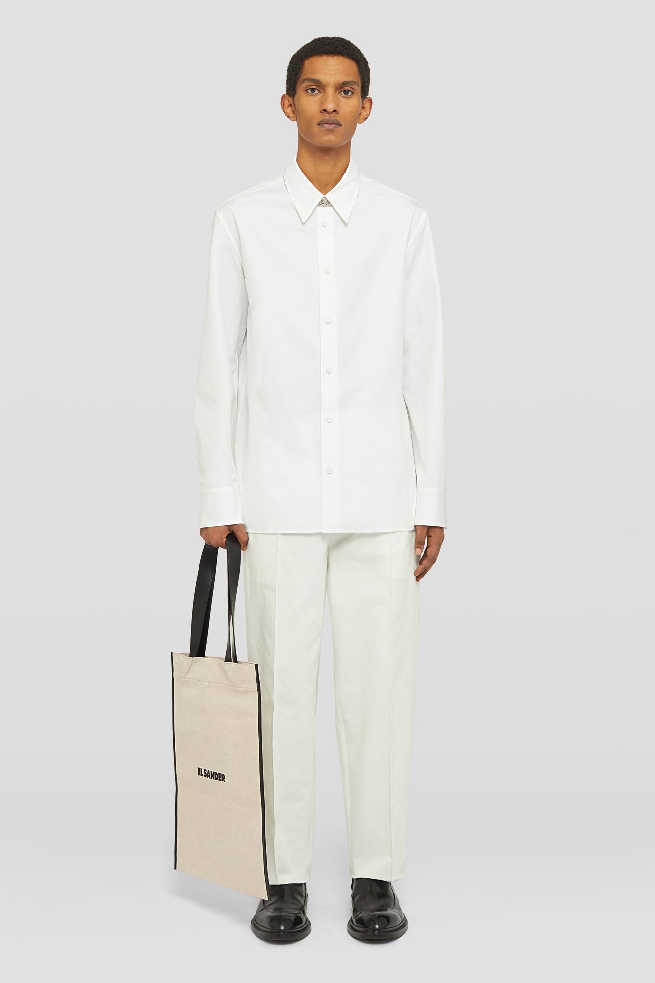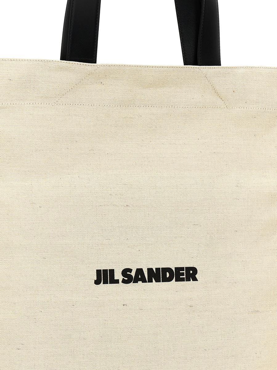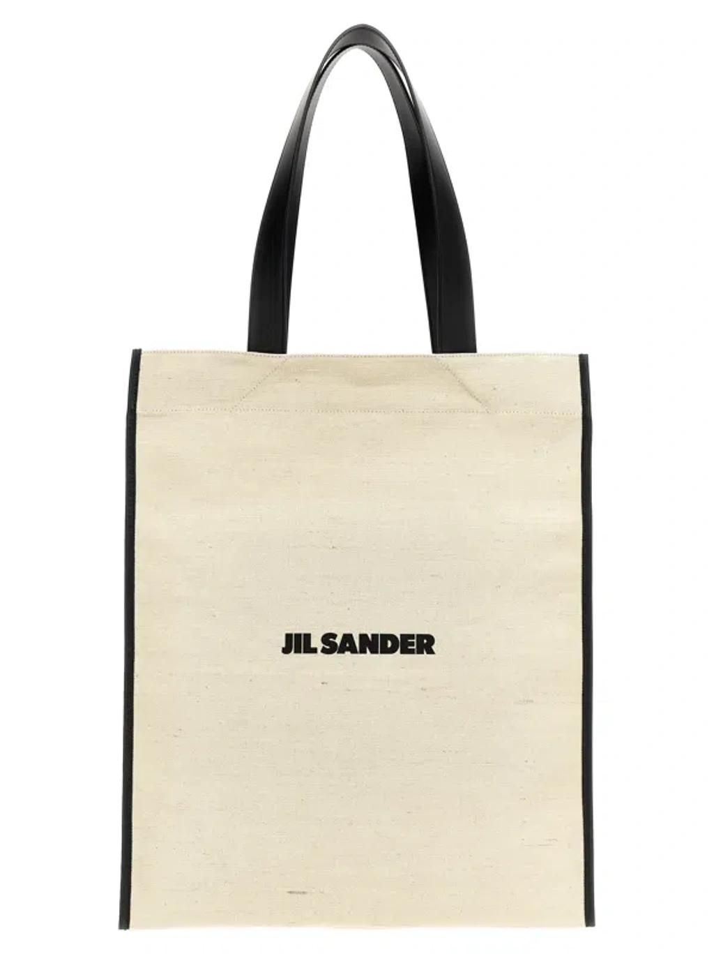 Shop Jil Sander Medium Flat Shopping Bag In White/black from 800+ stores, starting at $475. This medium 'Flat' canvas shopping bag from Jil Sander features a minimalist design with leather accents. Its roomy interior, highlighted by a bold front logo print, makes it practical for daily use. The durable double handles provide comfort during carrying.- Medium size - Canvas material - Leather details - Spacious interior - Front logo print - Double handles for comfort