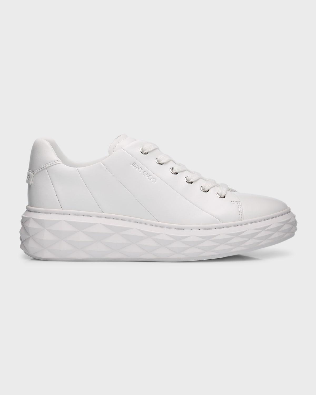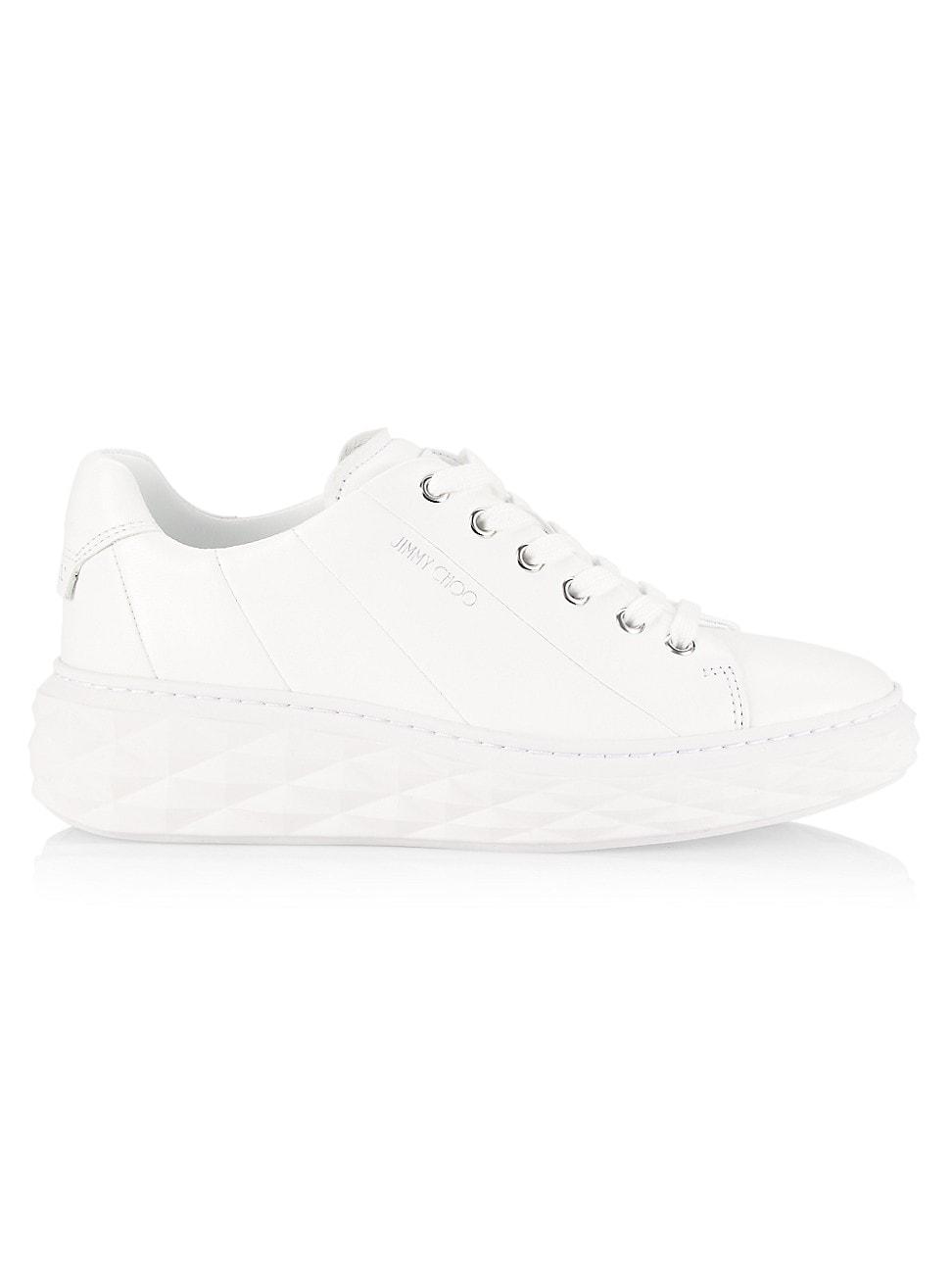 Set on a textured sole, the Diamond Light sneakers from Jimmy Choo flaunt a low-top silhouette and an embossed logo detail. Round toe Lace-up style Leather/plastic/metal upper Leather lining Rubber sole Imported SIZE & FIT This brand fits slightly smaller. Consider ordering a half size up. ABOUT THE BRAND Designer Jimmy Choo made his start with a made-to-order shoe boutique in Londons East End for private clients, including royals, celebrities and socialites. Building a loyal following, the designer officially launched the brand in 1996, with Choos niece, Sandra Choi, coming on board as creative director. Today, the label continues to deliver finely crafted, ultra-glamorous accessories, including handbags and sunglasses. Womens Shoes - Jimmy Choo Womens Shoes > Jimmy Choo > Saks Fifth Avenue > Barneys. Jimmy Choo. Color: White. Size: 8.5.