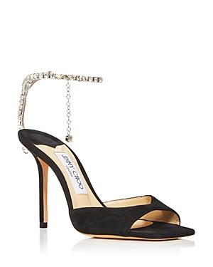 Jimmy Choos Saeda sandals are crafted of shiny metallic leather with a crystal-embellished ankle chain strap. Leather upper Open toe Lobster clasp Lining: Leather Leather sole Made in Italy SIZE & FIT This brand fits slightly smaller. Consider ordering a half size up. Heel height, 4 (100mm) ABOUT THE BRAND Designer Jimmy Choo made his start with a made-to-order shoe boutique in Londons East End for private clients, including royals, celebrities and socialites. Building a loyal following, the designer officially launched the brand in 1996, with Choos niece, Sandra Choi, coming on board as creative director. Today, the label continues to deliver finely crafted, ultra-glamorous accessories, including handbags and sunglasses. Womens Shoes - Jimmy Choo Womens Shoes > Jimmy Choo > Saks Fifth Avenue > Barneys. Jimmy Choo. Color: Gold Crystal. Size: 10.