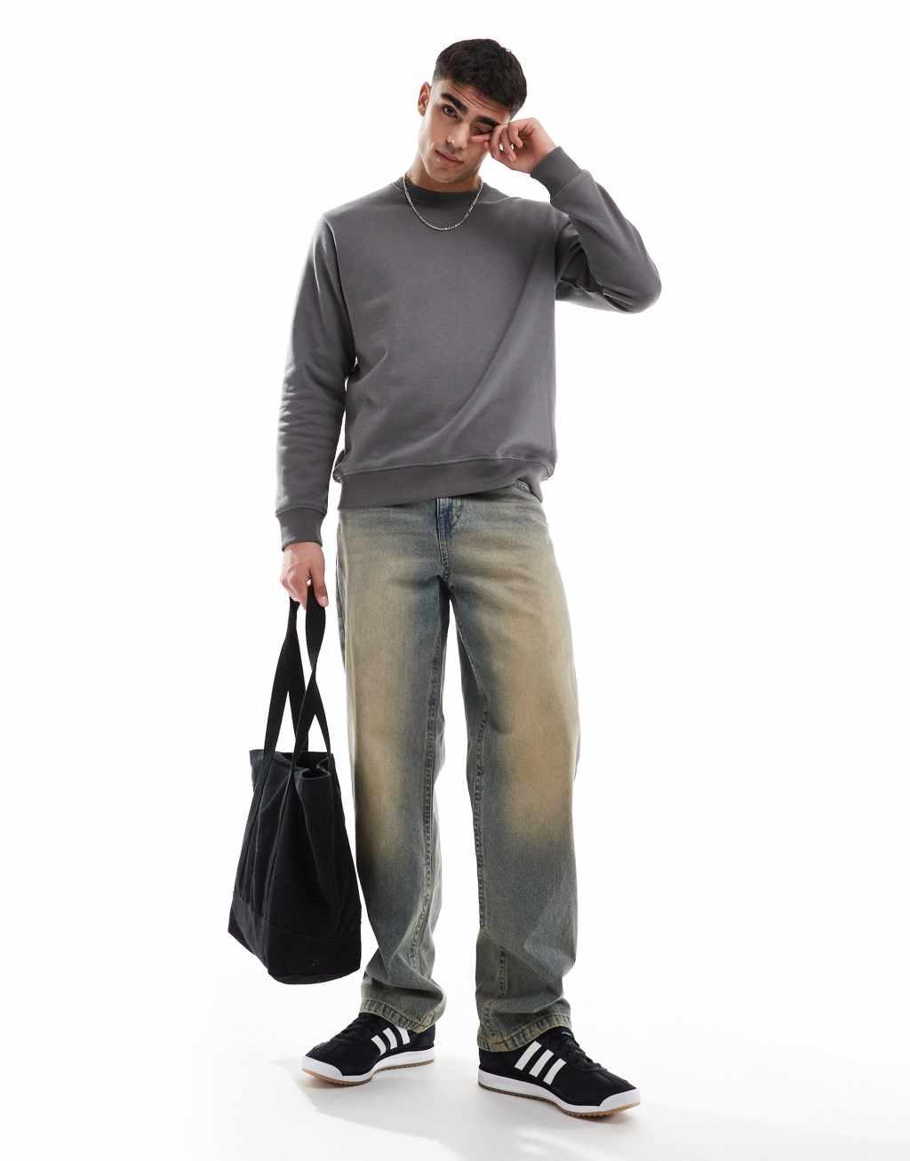JJ Rebel oversized crew neck sweatshirt in dark gray
