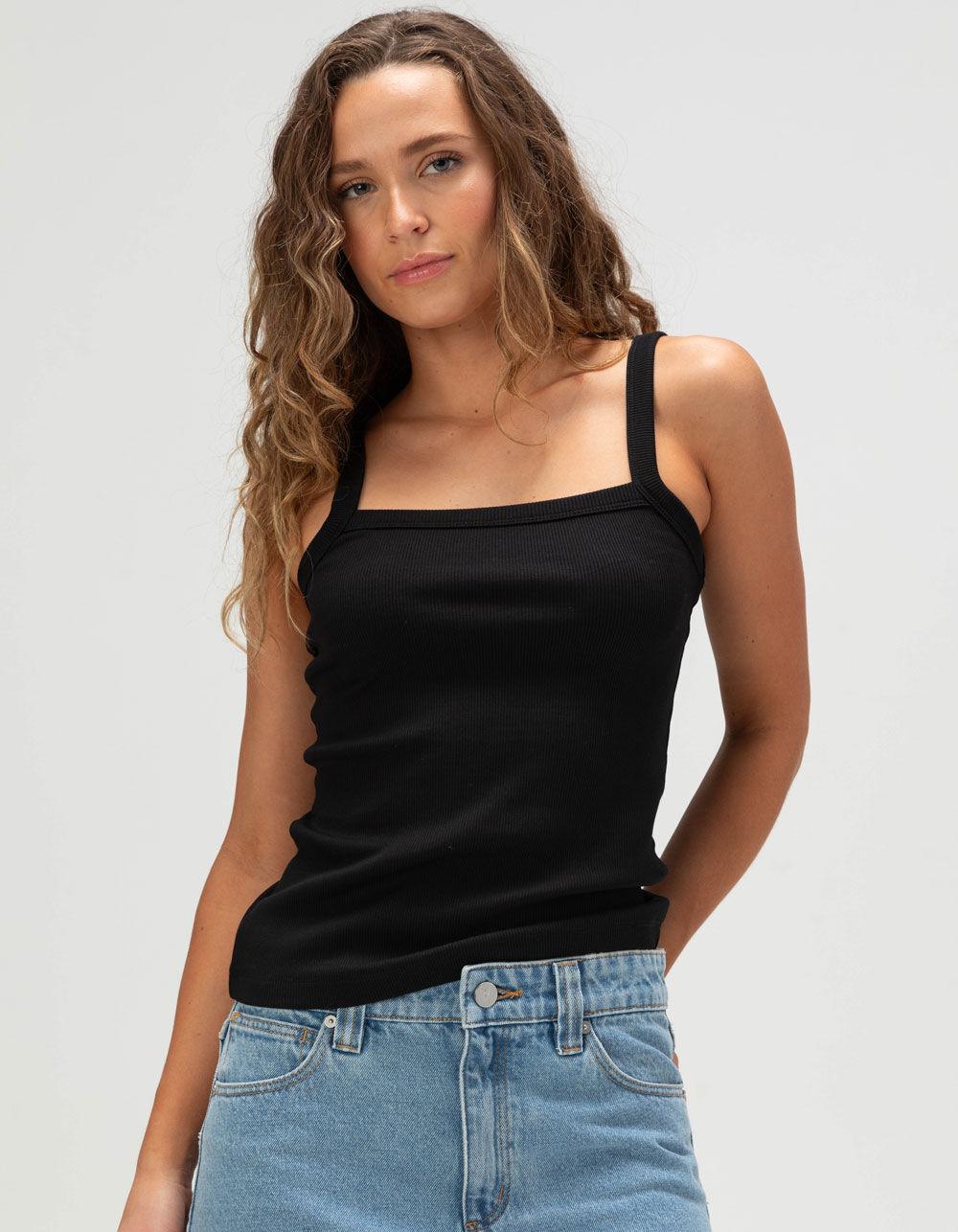 JJXX Fifi Tank Top. This basic tank top is an essential that works well with jeans, shorts, or pants. Rib knit has vertical ridges and is very stretchy for a comfortable feel. Square neckline. Sleeveless. Standard fit. 95% Cotton 5% Spandex. Machine wash. Imported.