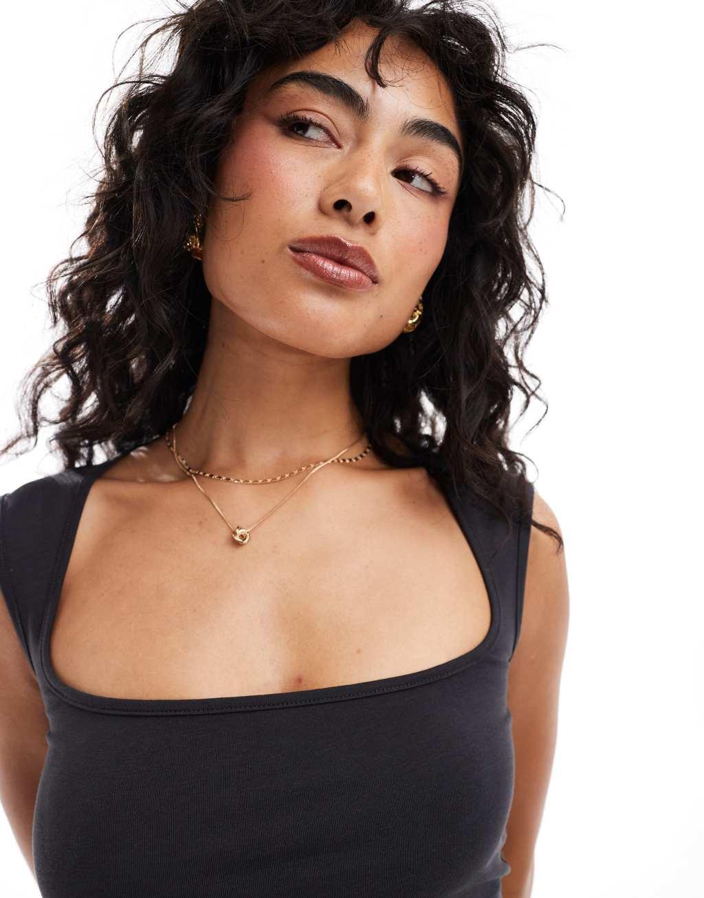 JJXX square neck top in washed black