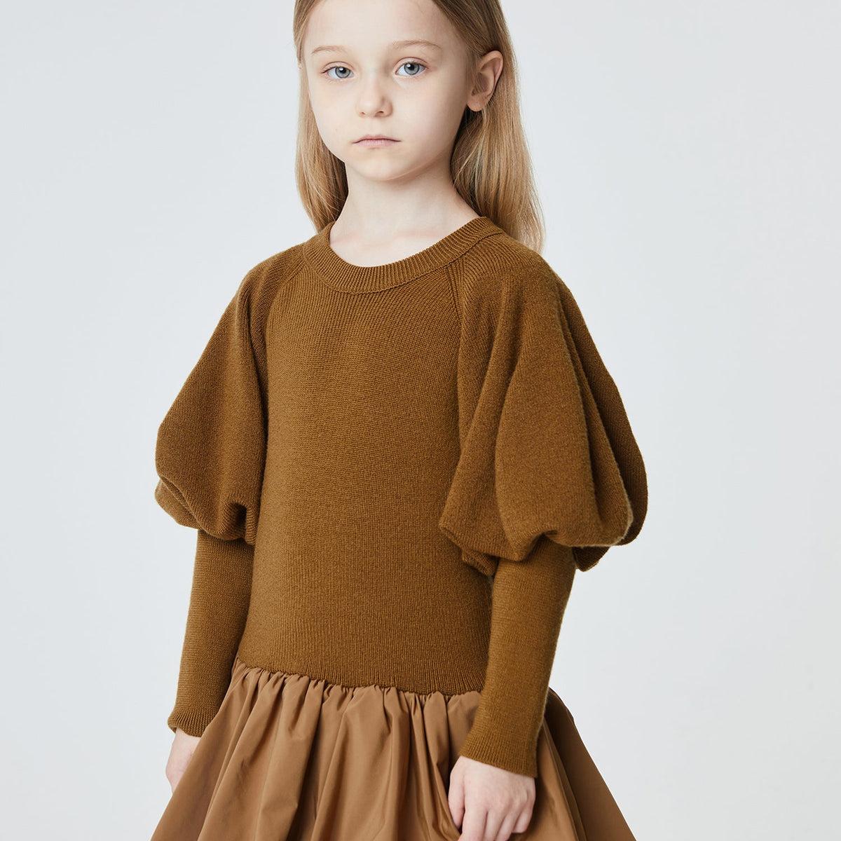 •LOOK: Sweater dressing with a twist. It starts off with a great sweater, crew neck, pull on style. The upper portion of the long sleeves is full and voluminous but tapers to the wrist for a streamlined look. The drop waist finishes with a fun and funky tier to match the balloon sleeves. Meant to be a dress but can also be a top over leggings or straight skirt. Be creative and have fun with this one.