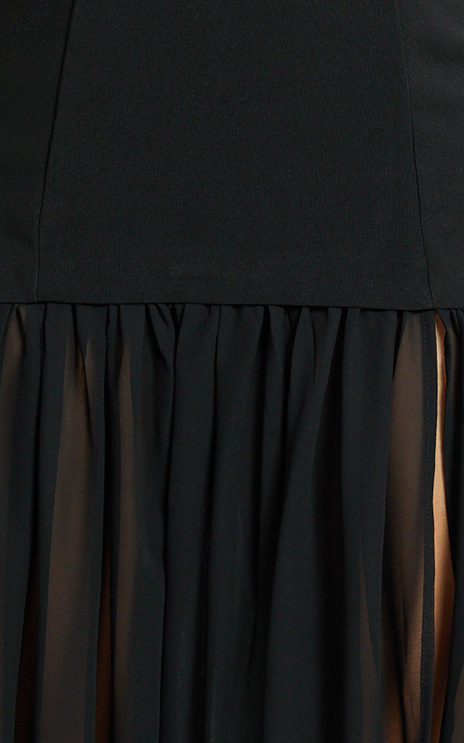 Size and FitSize S / 8 length: 136cm / 53.54inStudio model is wearing size XS / 6 AU / 2 US / 6 UK / 34 EUStudio model's height is 170cm / 5'7''Material and CareMain Fabric: 96% Polyester, 4% Spandex Contrast Fabric: 100% Polyester Lining: 96% Polyester, 4% SpandexLow / No stretch
