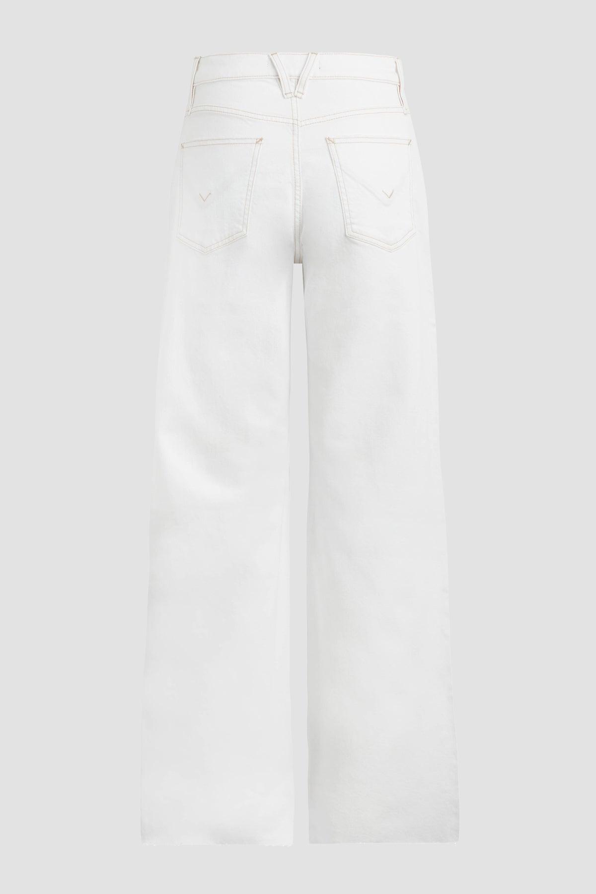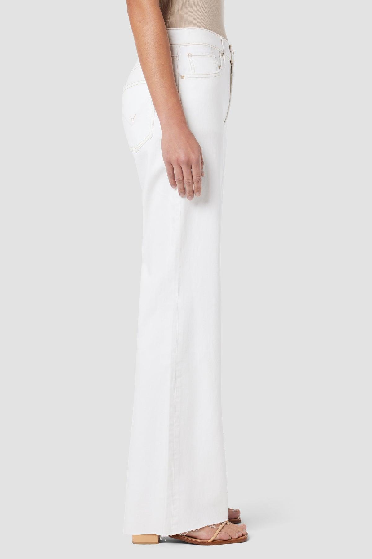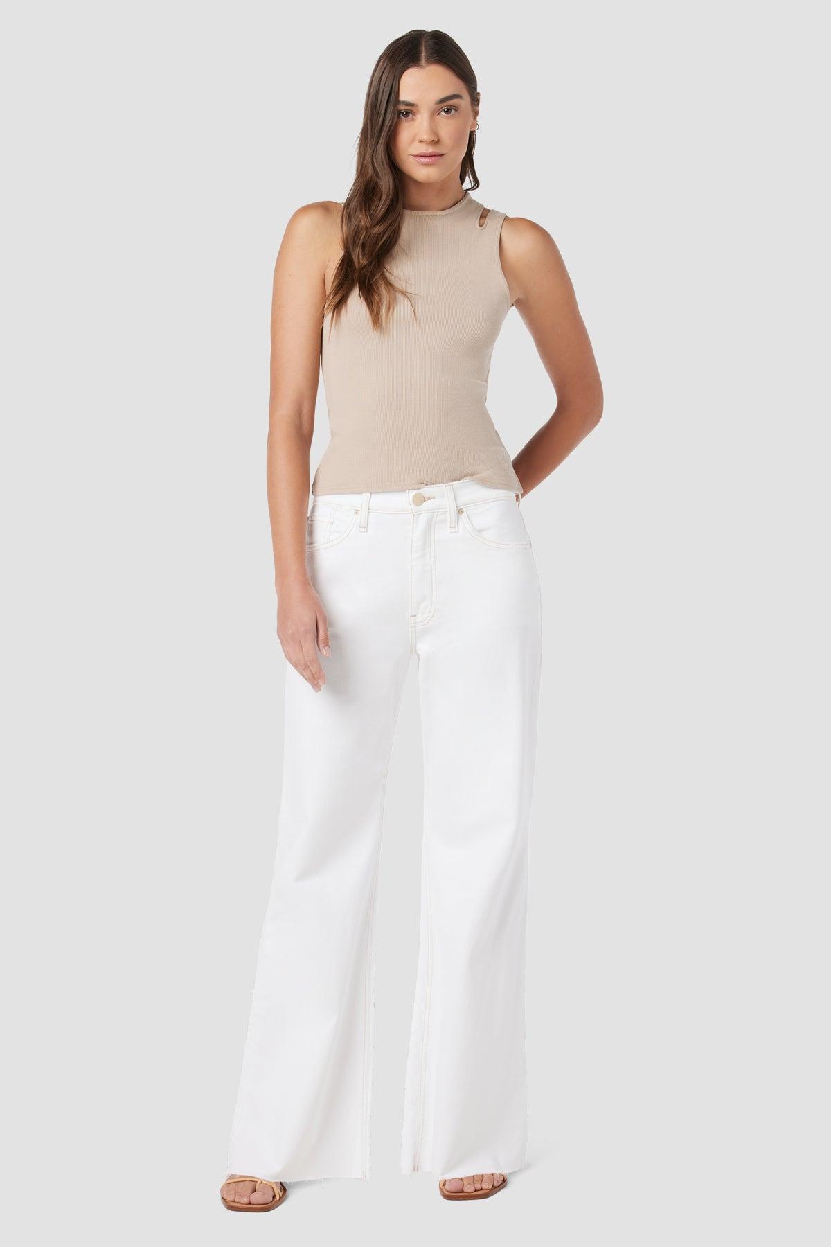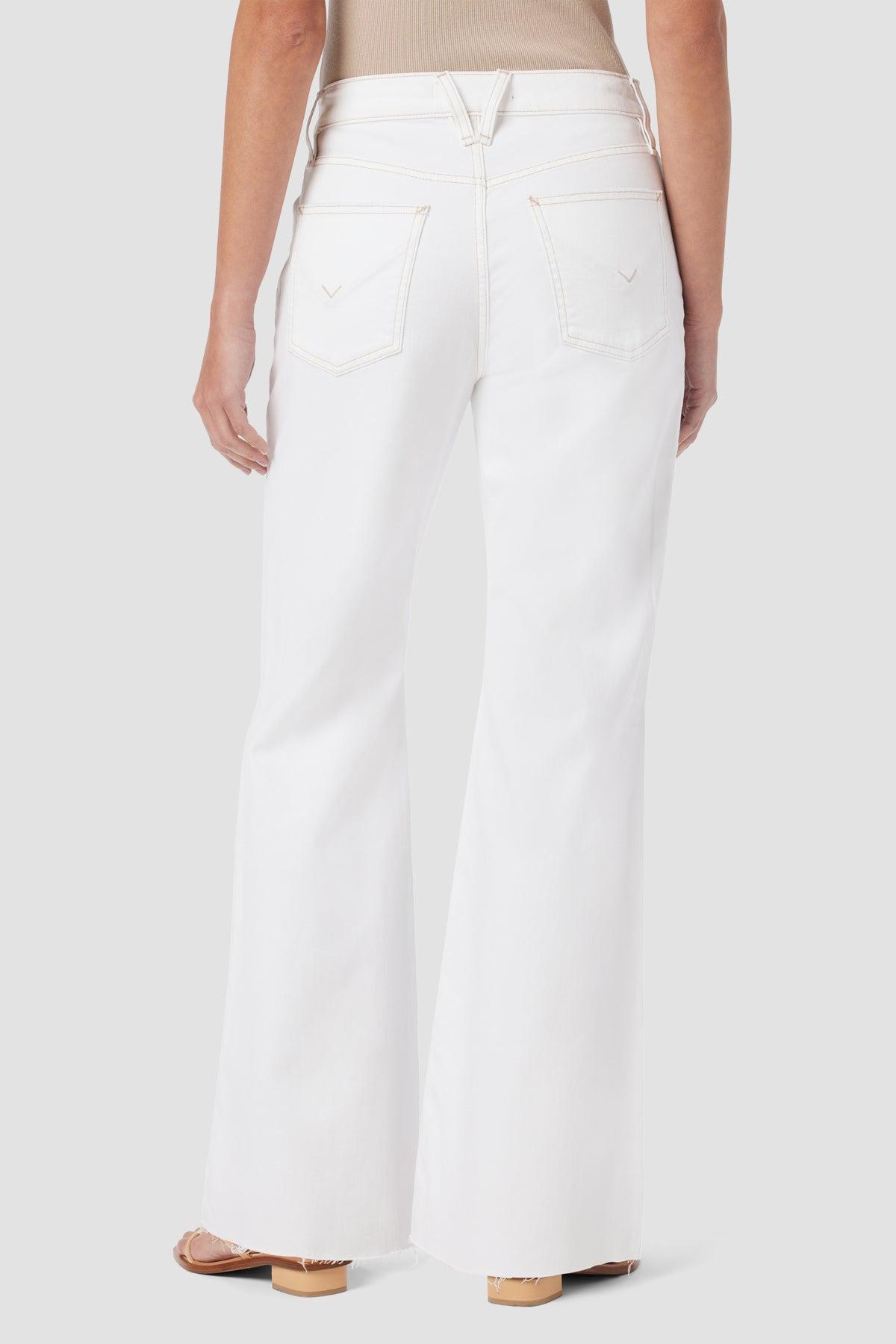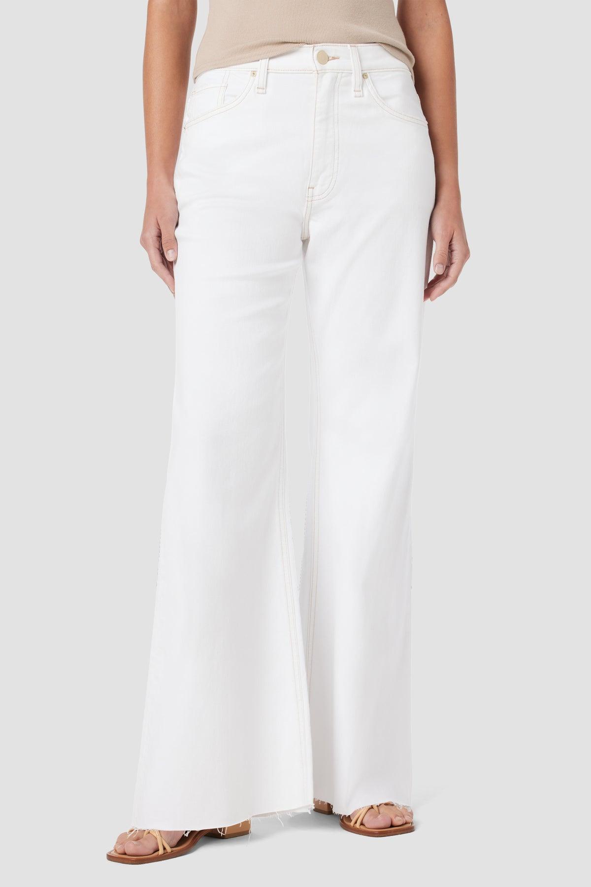 Description Our Jodie High-Rise Flare Jean in White is cut for a roomy fit with a wide-leg flare from our comfort stretch denim that offers flexibility. Complete with classic five pocket details and a raw hem. Product Details Front Rise: 12", Leg Opening: 25", Inseam: 32"Model Height 5'9"Model wearing size 25Measurements based on size 27 Fit & Care Content: 63% Cotton, 35% Lyocell, 2% ElastaneMachine wash cold with like colorsDo not bleachTumble dry low or hang to dry