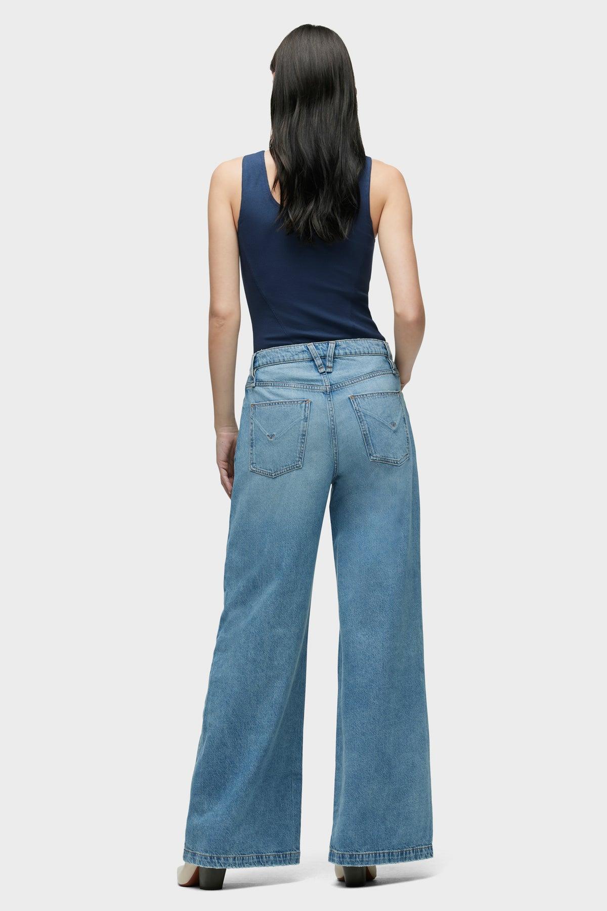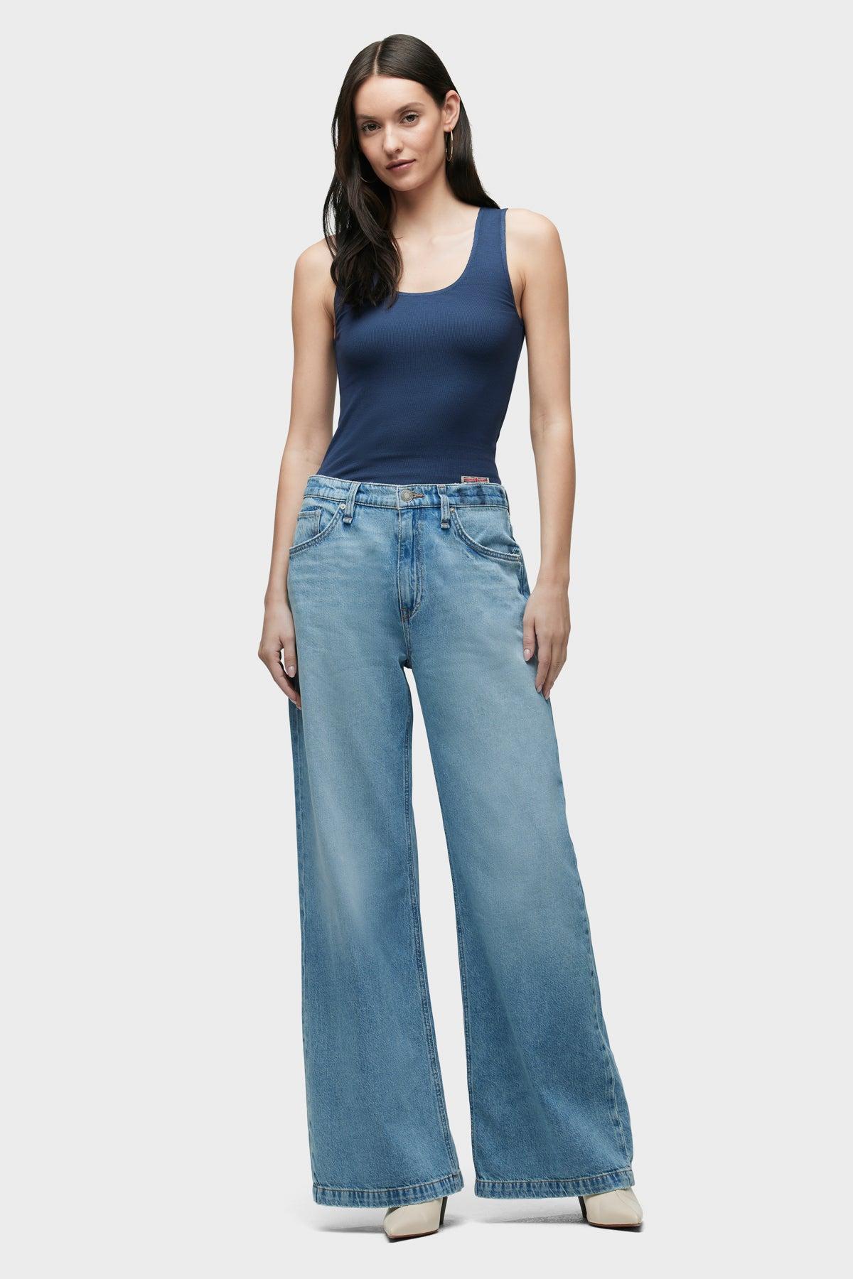 Description Our Jodie Loose Fit Wide Leg Jean in light-blue Aspen is cut in a must-own, roomy fit with a 32" inseam and classic five-pocket styling. Made from rigid denim that's lightweight and gets even better with each wear. Product Details Front Rise: 12", Leg Opening: 25", Inseam: 32"Model wearing size 25Measurements based on size 27 Fit & Care Content: 79% Cotton, 21% ViscoseMachine wash cold with like colorsDo not bleachTumble dry low or hang to dry