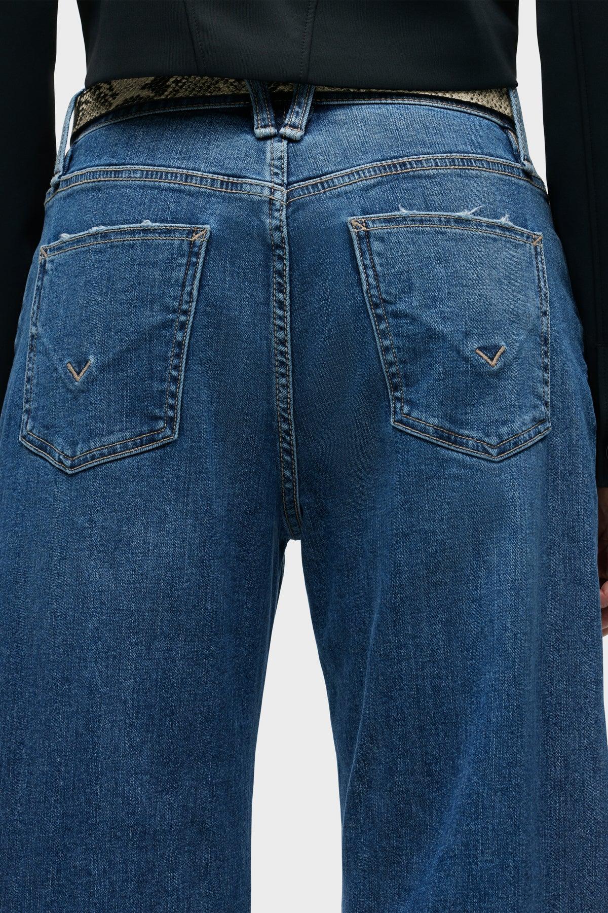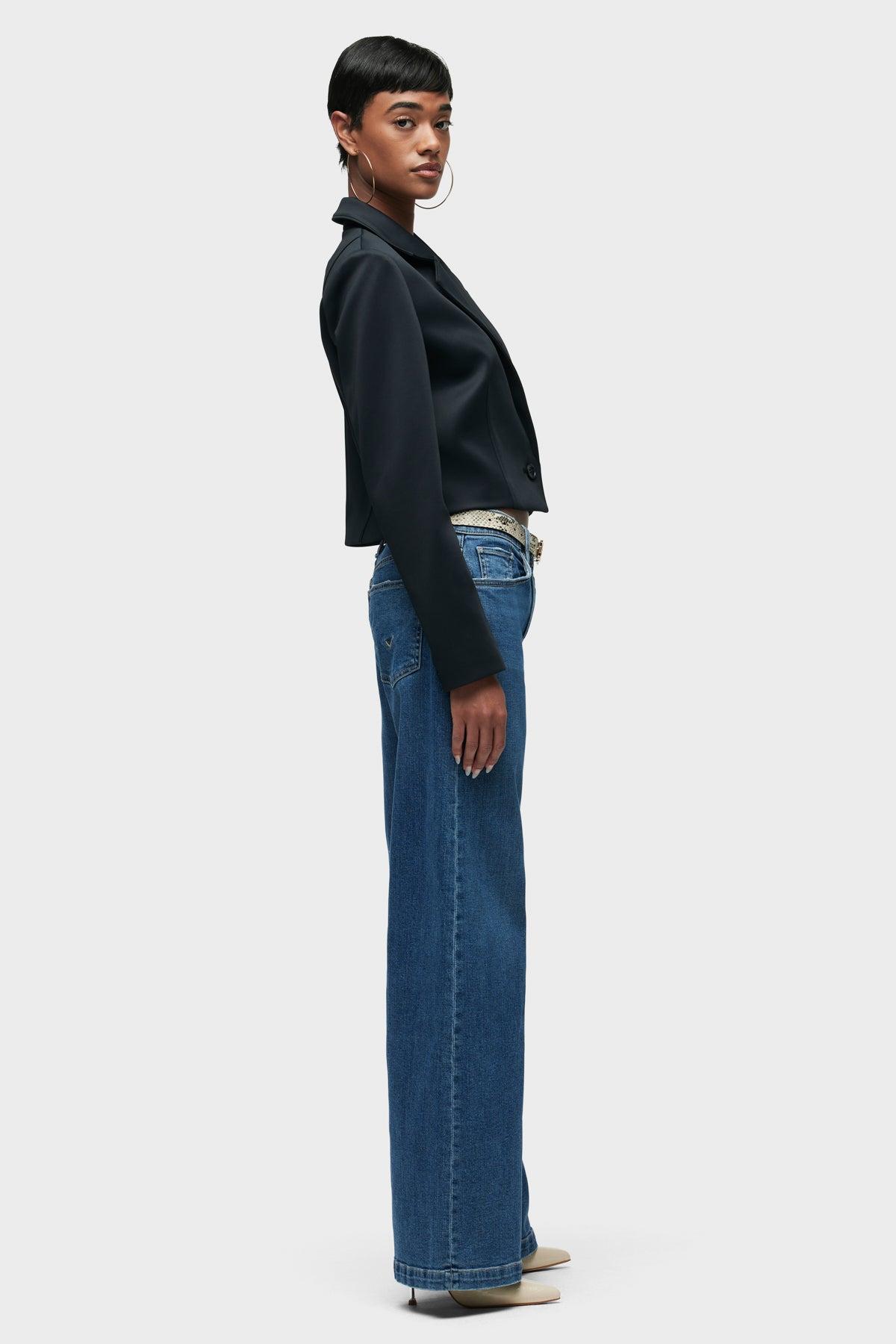 Description Our Jodie Loose Fit Wide Leg Jean in a medium-blue Hillside is cut for a roomy fit from true comfort stretch denim. Finished with 32" inseam, classic five-pocket styling, grinding along the edges and a clean, finished hem. Product Details Front Rise: 12", Leg Opening: 25", Inseam: 32"Model Height 5'9"Model wearing size 25Measurements based on size 27 Fit & Care Content: 98.5% Cotton, 1.5% LycraMachine wash cold with like colorsDo not bleachTumble dry low or hang to dry