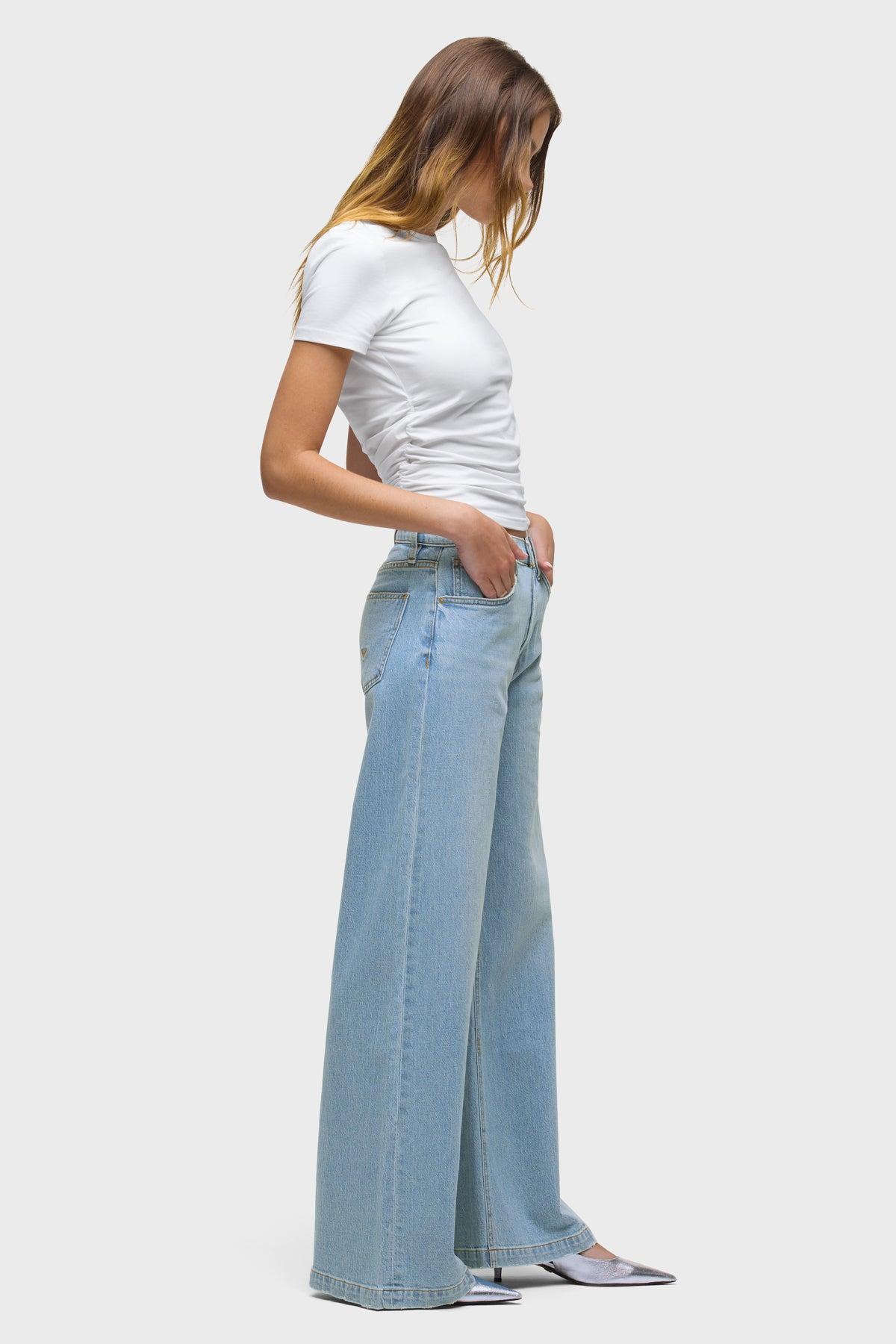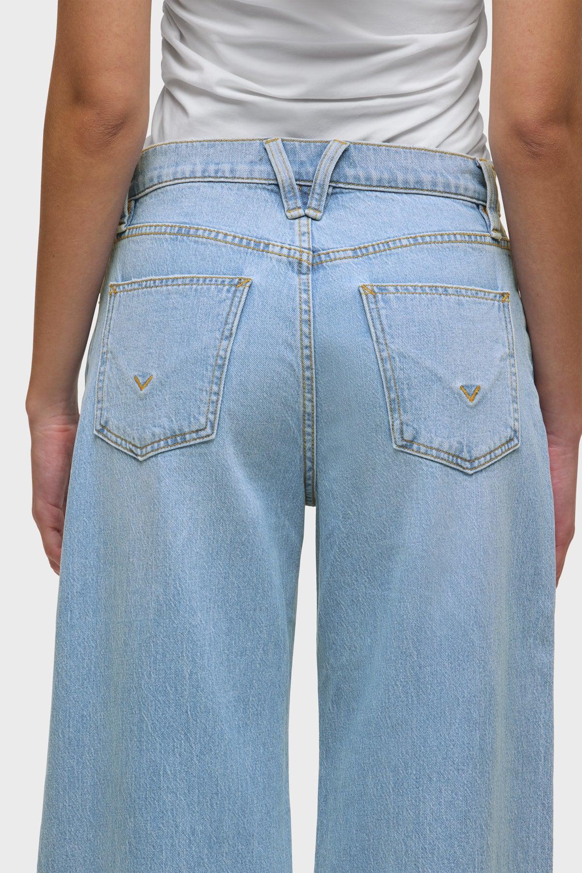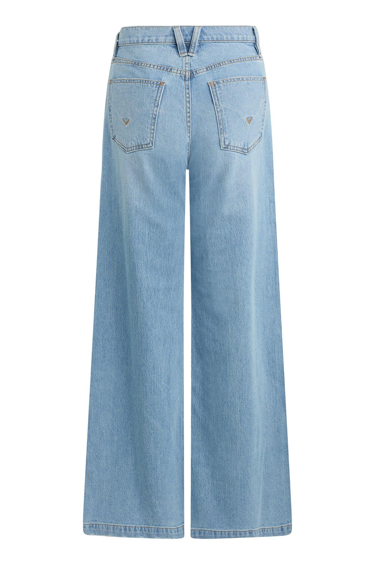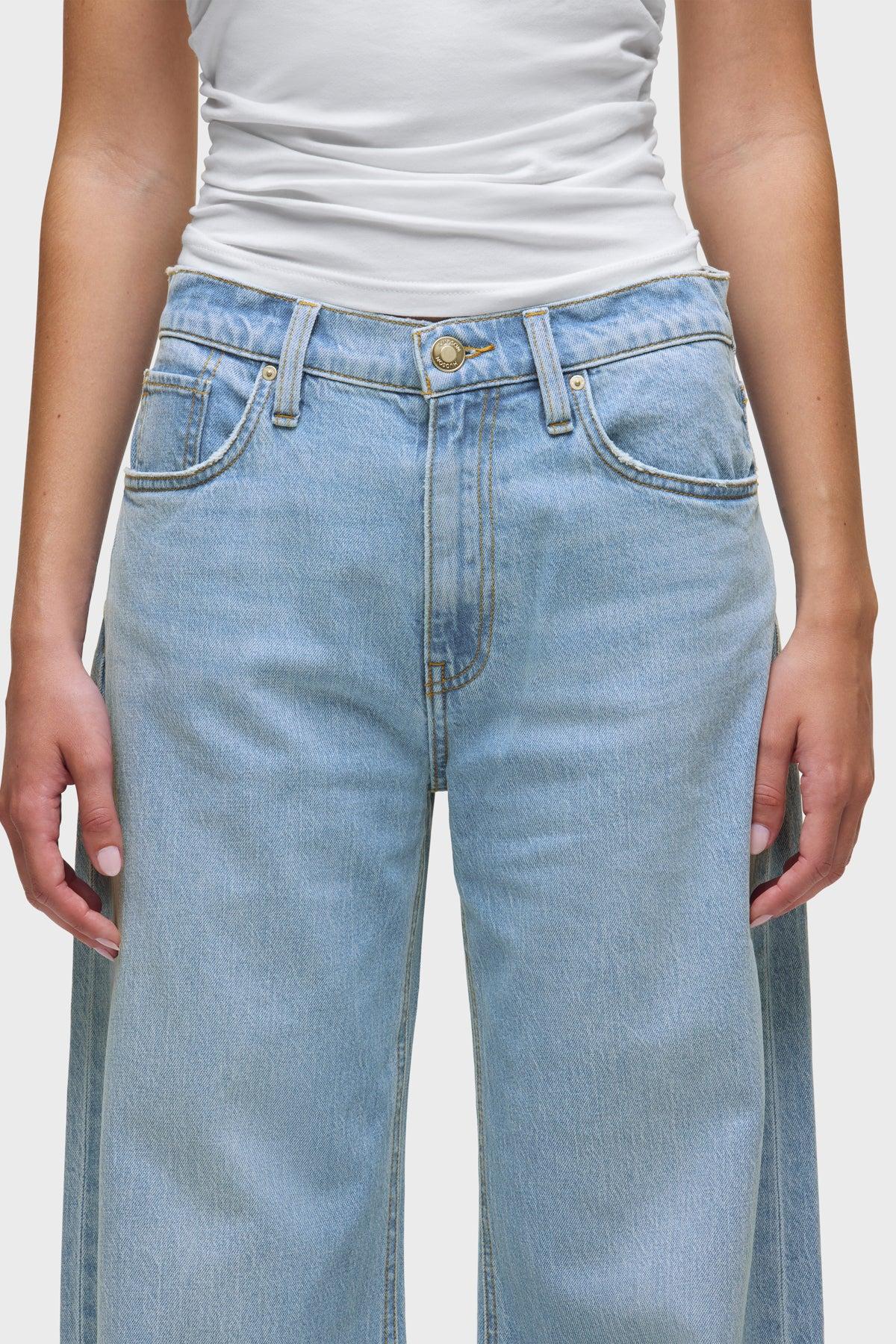Description Our Jodie Loose Fit Wide Leg Jean in Americana has a flattering, roomy fit with a 32" inseam. This pair is made of true comfort stretch denim in a light indigo wash with a clean finished hem. Product Details Front Rise: 12", Leg Opening: 25", Inseam: 32"Model Height 5'9"Model wearing size 25/SMeasurements based on size 27/S Fit & Care Content: 98% Cotton, 2% ElastaneMachine wash cold gentle cycleOnly non-chlorine bleach when neededTumble dry lowMedium iron if needed