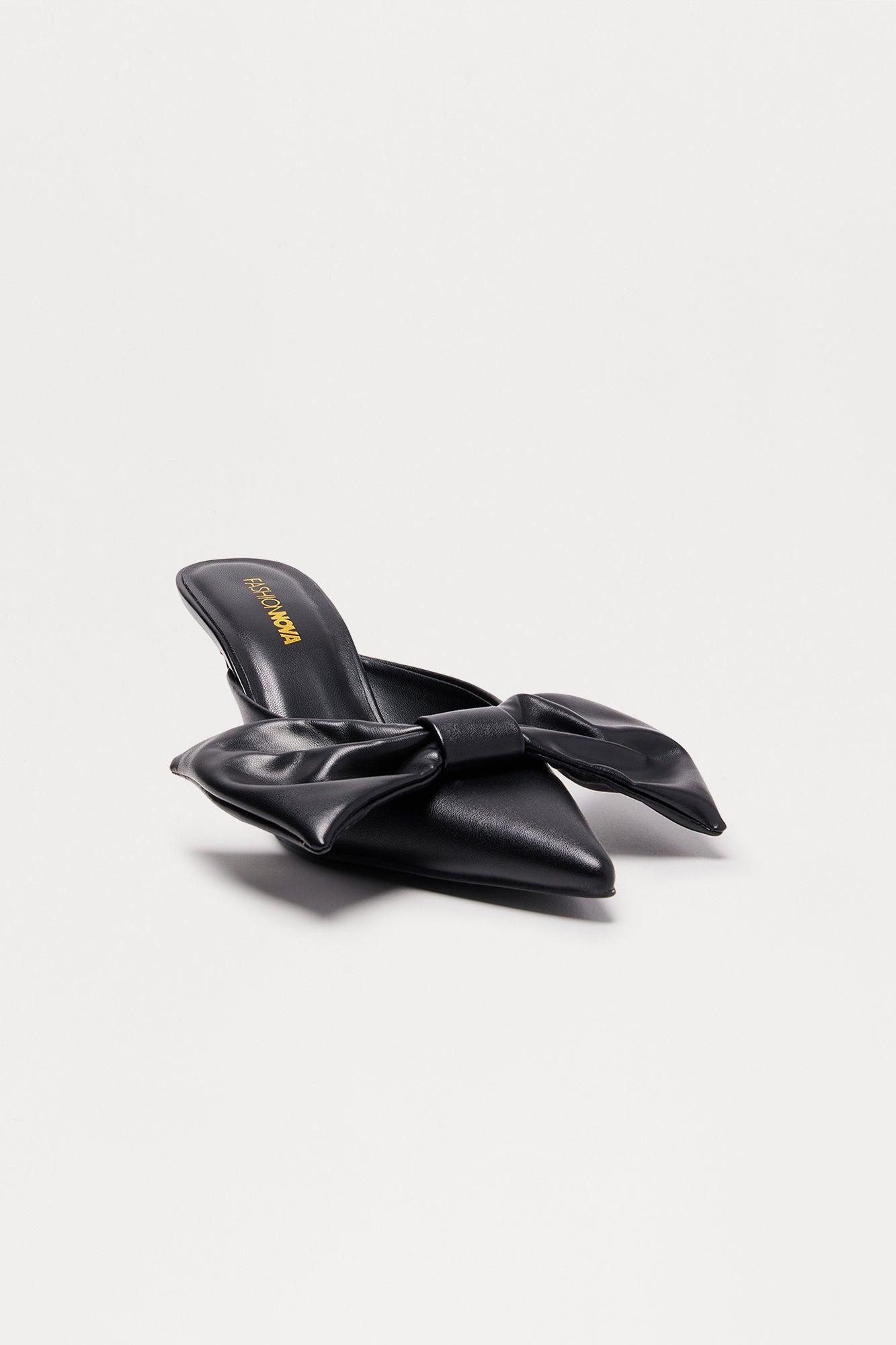 Available In Black And Leopard. Pointed Toe Bow Detail 3 Inch Heel Mules Imported California Proposition 65WARNING: Cancer and Reproductive Harm - www.P65Warnings.ca.gov.