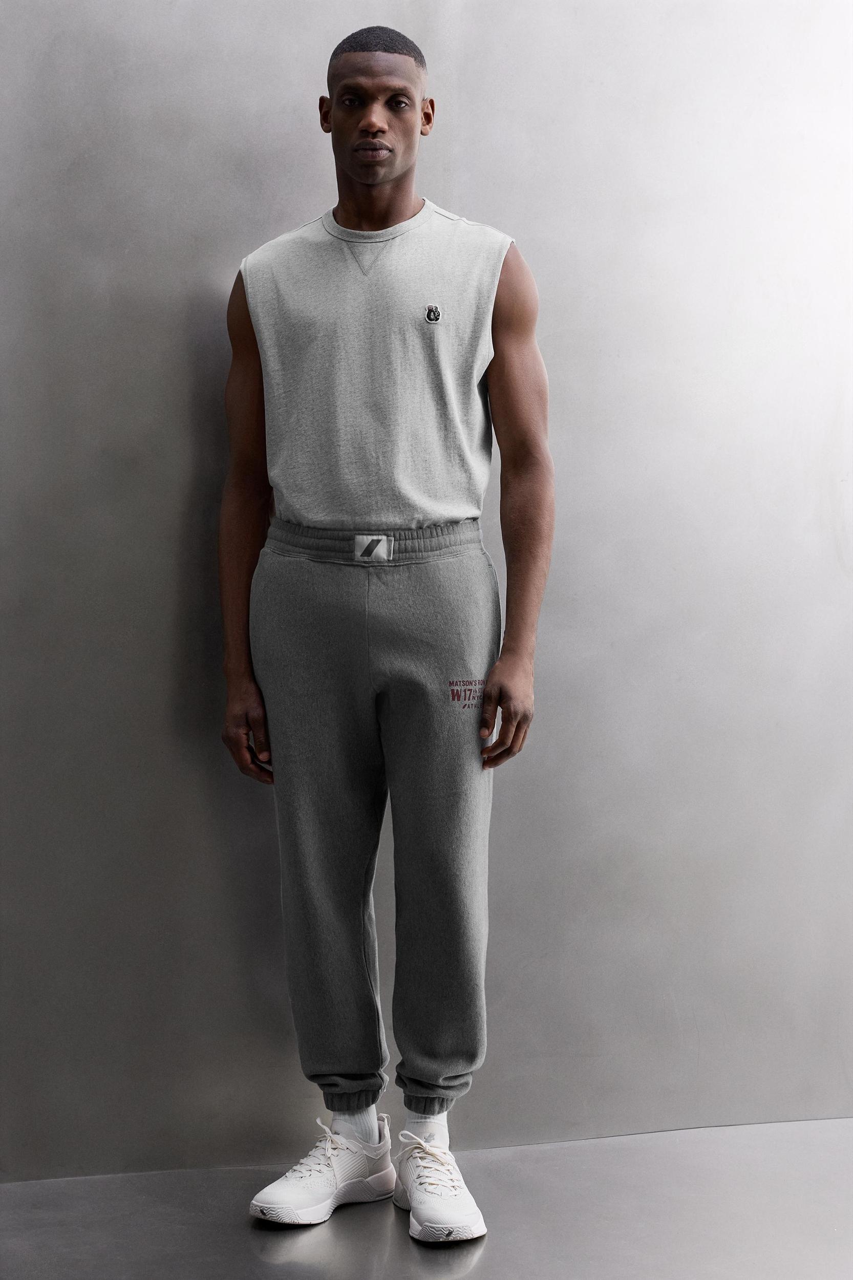 - Adjustable elastic drawstring waistband. Contrasting logo patch.