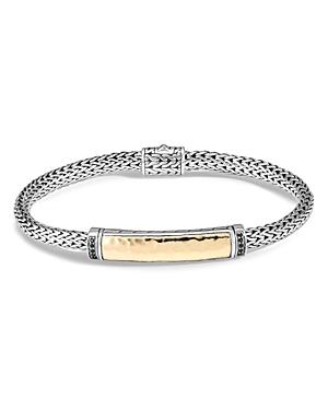From the Classic Chain Collection. Crafted from sterling silver and 18K yellow gold, this handmade bracelet comes alive with a hammered station that catches the light. Black sapphire and spinel accents give it a graphic, modern aesthetic. Black spinel Treated black sapphire 18K yellow gold Silver Pusher clasp Imported SIZE Gauge, about 5mm Small, 5.75 Medium, 6.25 Large, 6.75. Fashion Jewelry - John Hardy > John Hardy > Saks Fifth Avenue > Barneys. John Hardy. Color: Gold Silver. Size: Small.