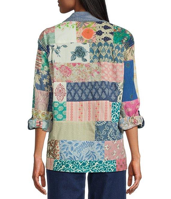 From John Mark Petite, this tunic features: Woven fabrication Point collar neckline Long roll-tab sleeves Loose fit All-over pattern patch print Front chest pocket Fraying detail at hem Slightly hi-low hem Button-front closure Approx. 23.75" front length; 25.25" back length Cotton Machine wash/tumble dry Imported.