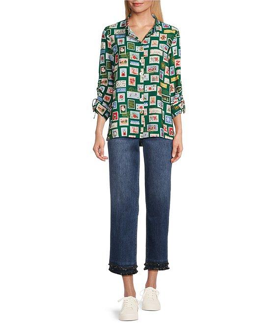 From John Mark Petite, these jeans feature: Stretch denim fabrication High rise Belt loops 5 pockets silhouette Crop length Tiered fringe at hem Approx. 23.5" inseam Button/zip closure Cotton/polyester/rayon/spandex Machine wash Imported.
