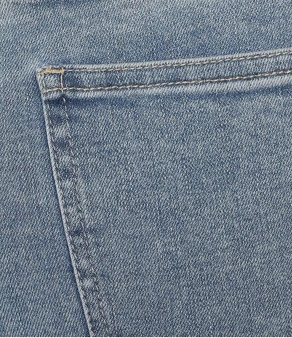 From John Mark Plus, these jeans feature: Woven fabrication Straight leg 5-pocket style Scalloped raw edge hem Ankle length Button/zip fly closure Approx. 25" inseam Cotton/polyester/rayon/spandex Machine wash/tumble dry Imported.