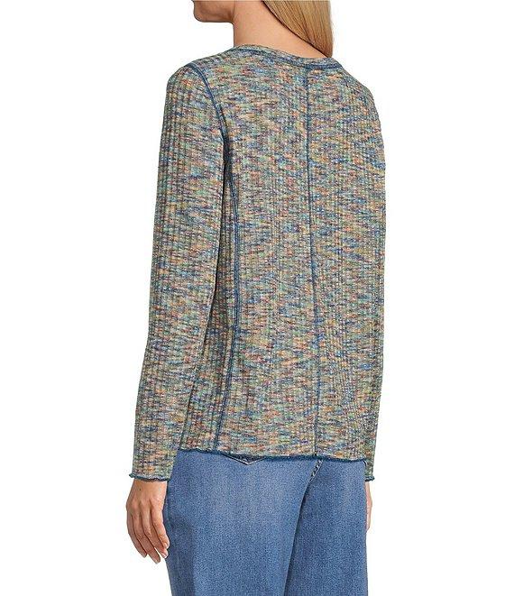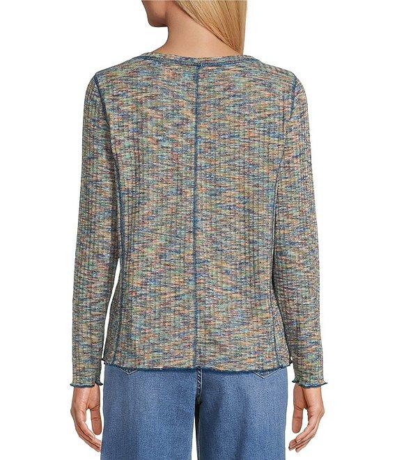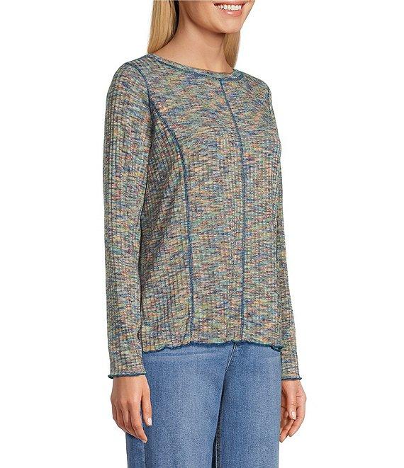John Mark Space Dye Scoop Neck Long Sleeve Knit Top