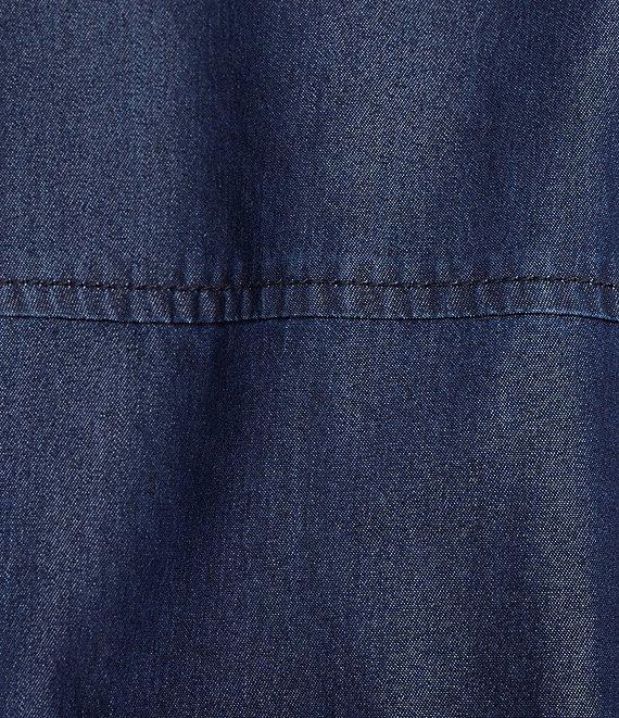 John Mark Woven Point Collar 3/4 Tucked Sleeve Button Front Denim Blouse