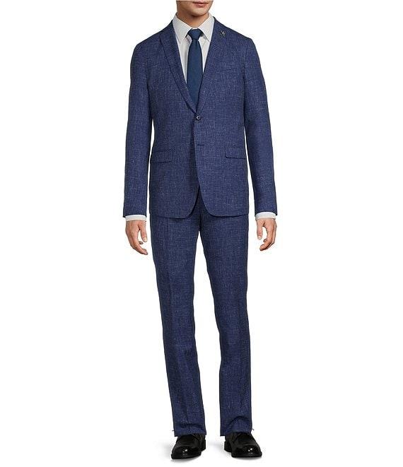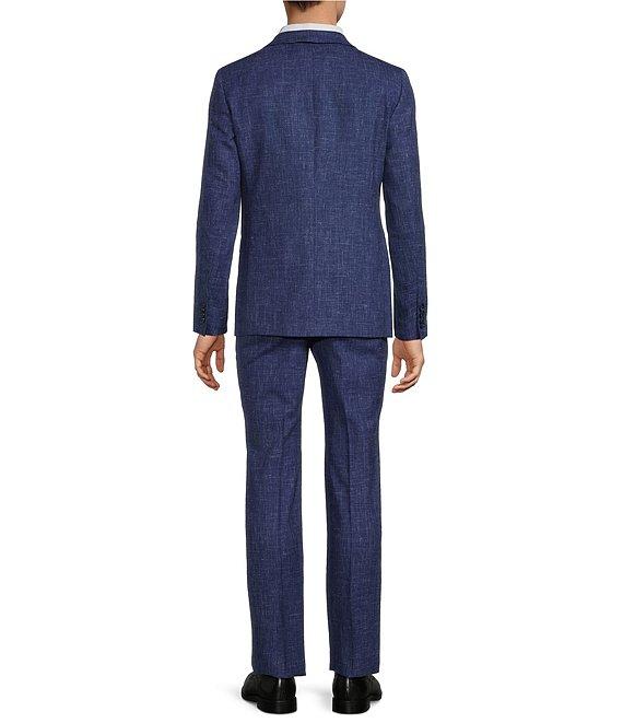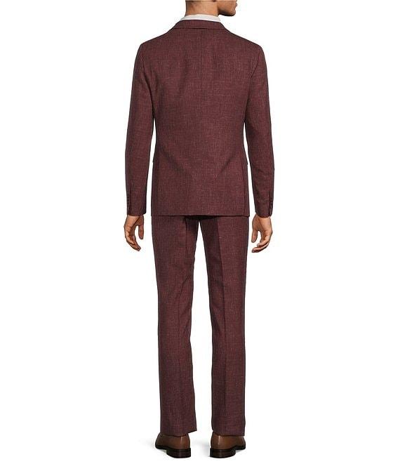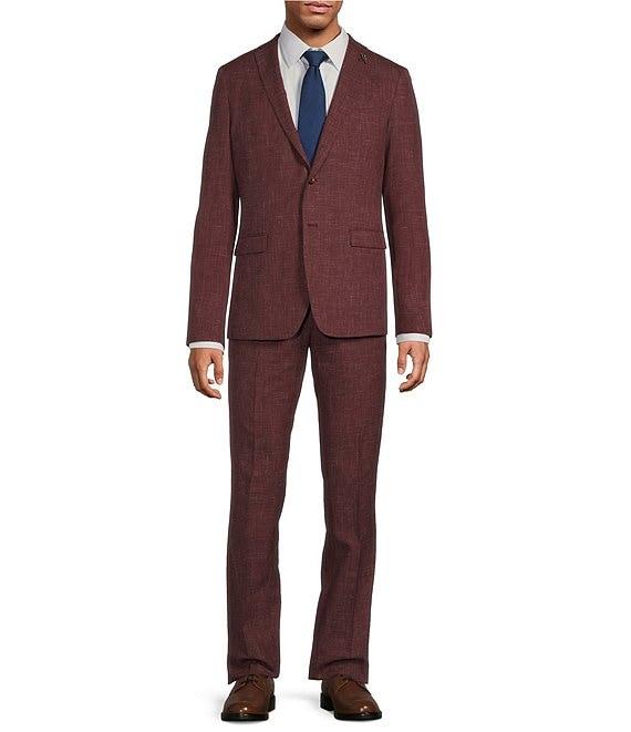 From John Varvatos, this 2-piece suit features: Jacket: Slim fit Solid pattern 2-button closure Side vent Notch lapel Flap pocket Half lined Pants: Matching Flat front Button closure with zip fly 2 front hand pockets 2 rear button pockets Nicely tapered from knee to bottom opening Unhemmed Care: Dry clean Wool blend Imported. *Dillard's offers free alterations at our retail store locations on full-price tailored garments. Suits have what is called a "drop", which is the difference between the size of the jacket and the size of the pants. Classic fit suits typically have a 6" drop, meaning that a size 38R jacket is paired with size 32 pants. Slim fit suits typically have a 7" drop; extra trim fit suits usually have an 8" drop.