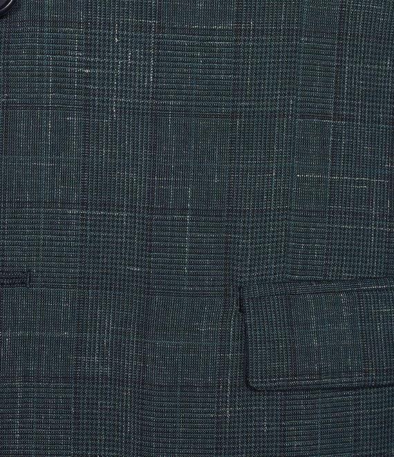 From John Varvatos, this 2-piece suit features: Jacket: Slim fit Plaid pattern 2-button closure Side vent Notch lapel Flap pocket Half lined Pants: Matching Flat front Button closure with zip fly 2 front hand pockets 2 rear button pockets Nicely tapered from knee to bottom opening Unhemmed Care: Dry clean Wool/linen Imported. *Dillard's offers free alterations at our retail store locations on full-price tailored garments. Suits have what is called a "drop", which is the difference between the size of the jacket and the size of the pants. Classic fit suits typically have a 6" drop, meaning that a size 38R jacket is paired with size 32 pants. Slim fit suits typically have a 7" drop; extra trim fit suits usually have an 8" drop.