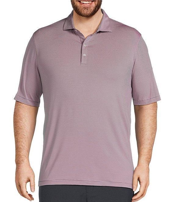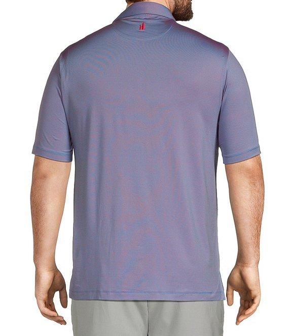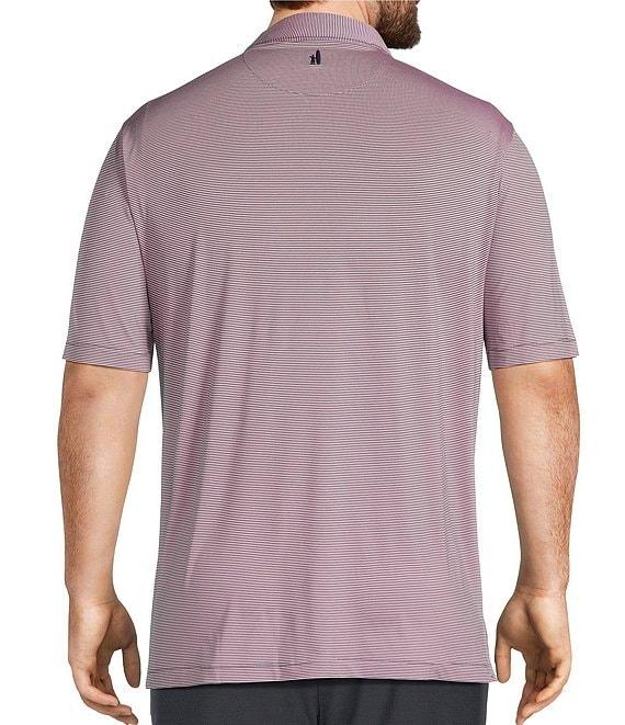 From Johnnie-O, this shirt features: Thin, horizontal stripe pattern Embroidered logo center back yoke Polo collar Short sleeves 3-button placket Side vents Pullover construction UPF 50 sun protection Moisture wicking Stretch jersey fabric Polyester/spandex Machine wash/tumble dry Imported.